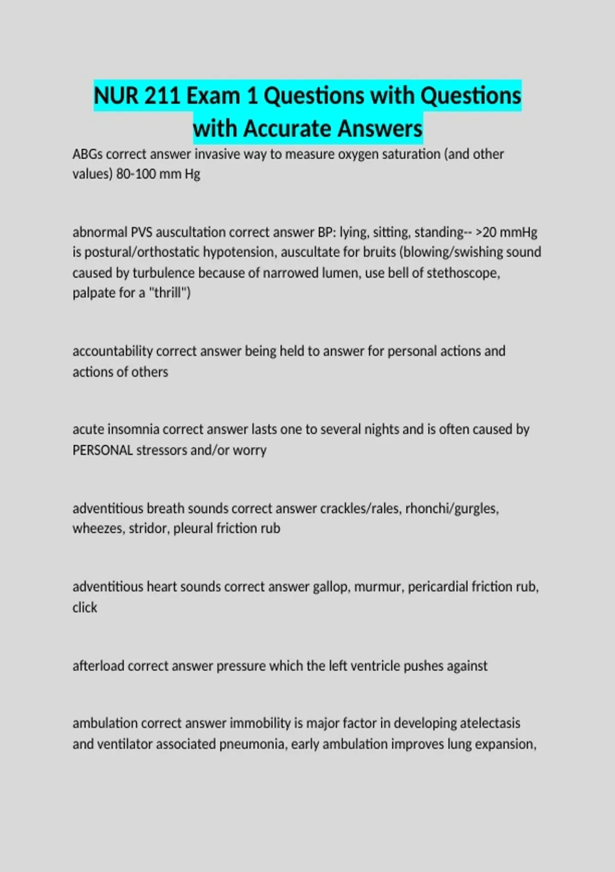 NUR 211 Exam 1 Questions with Questions with Accurate Answers