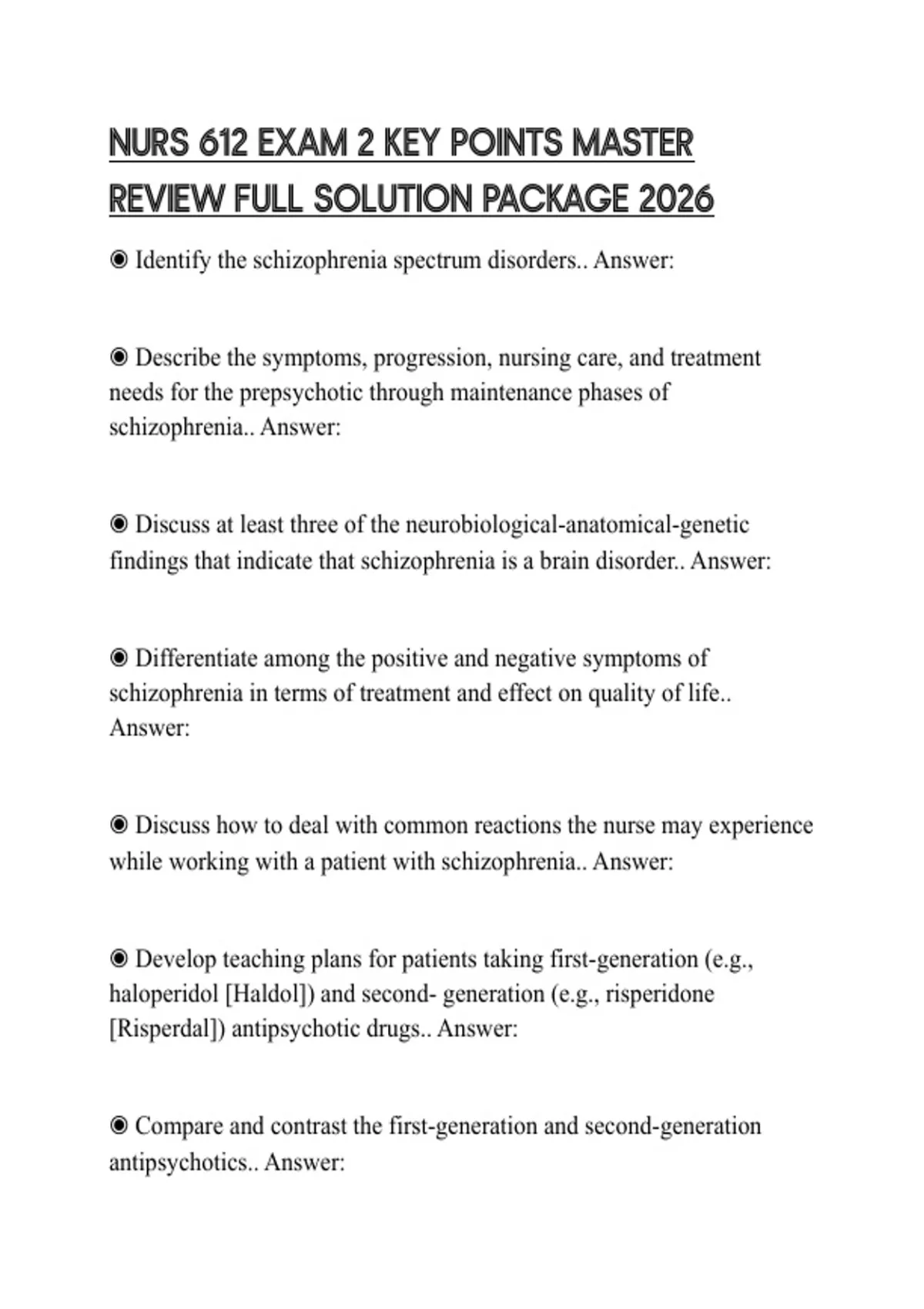 NURS 612 EXAM 2 KEY POINTS MASTER REVIEW FULL SOLUTION PACKAGE 2026