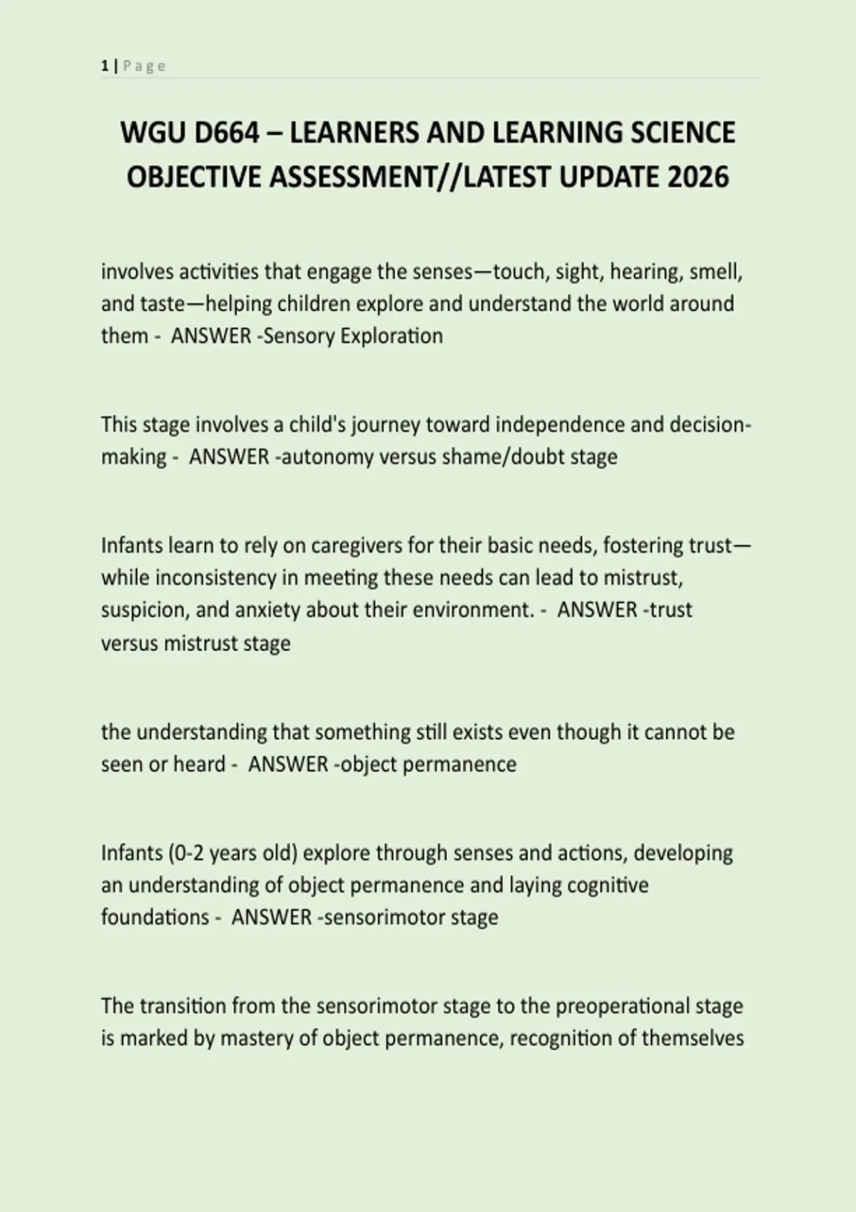 WGU D664 – LEARNERS AND LEARNING SCIENCE OBJECTIVE ASSESSMENT//LATEST UPDATE 2026