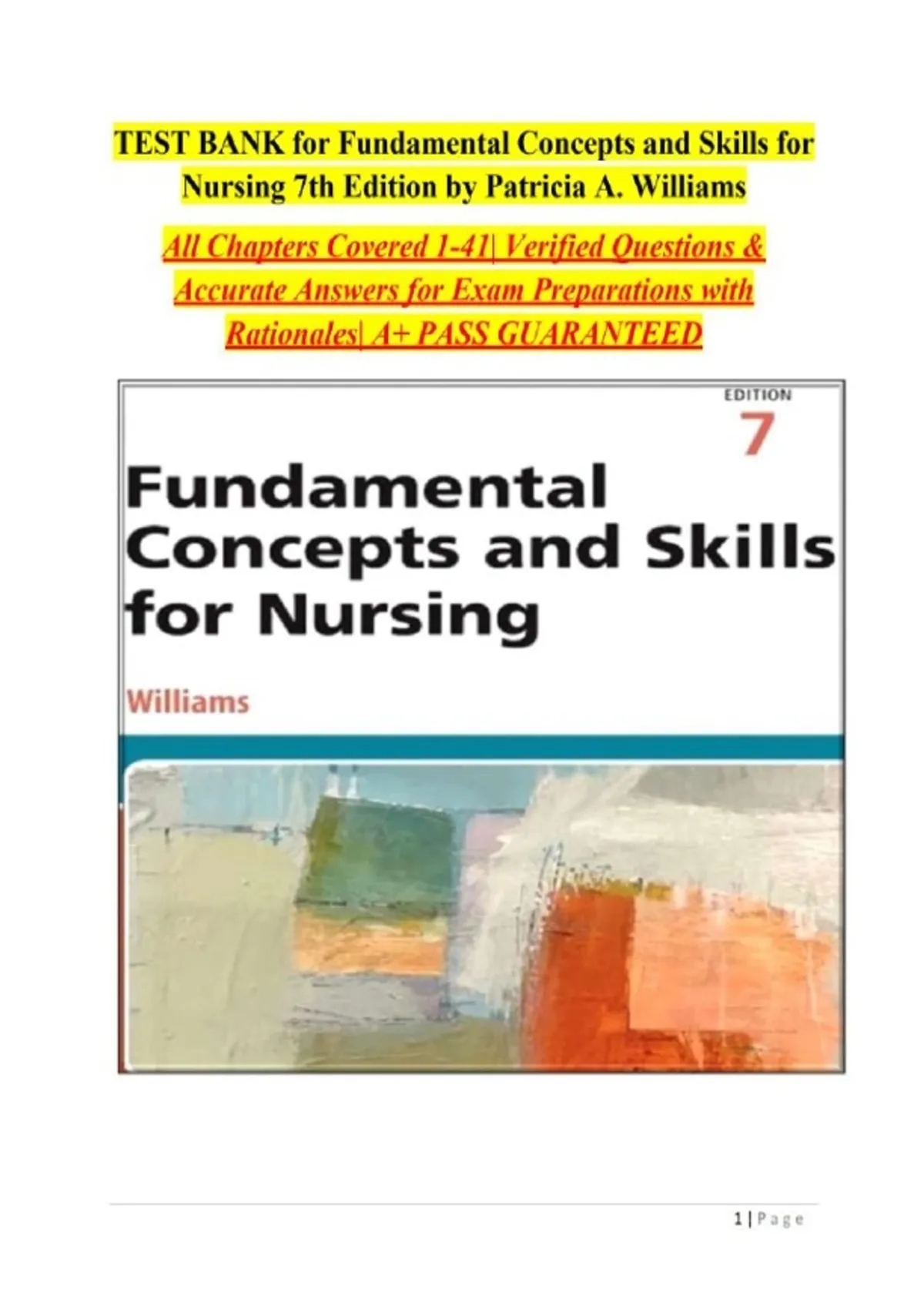Fundamental Concepts and Skills for Nursing (7th Edition) – Test Bank, Patricia A. Williams, Chapters 1–41..