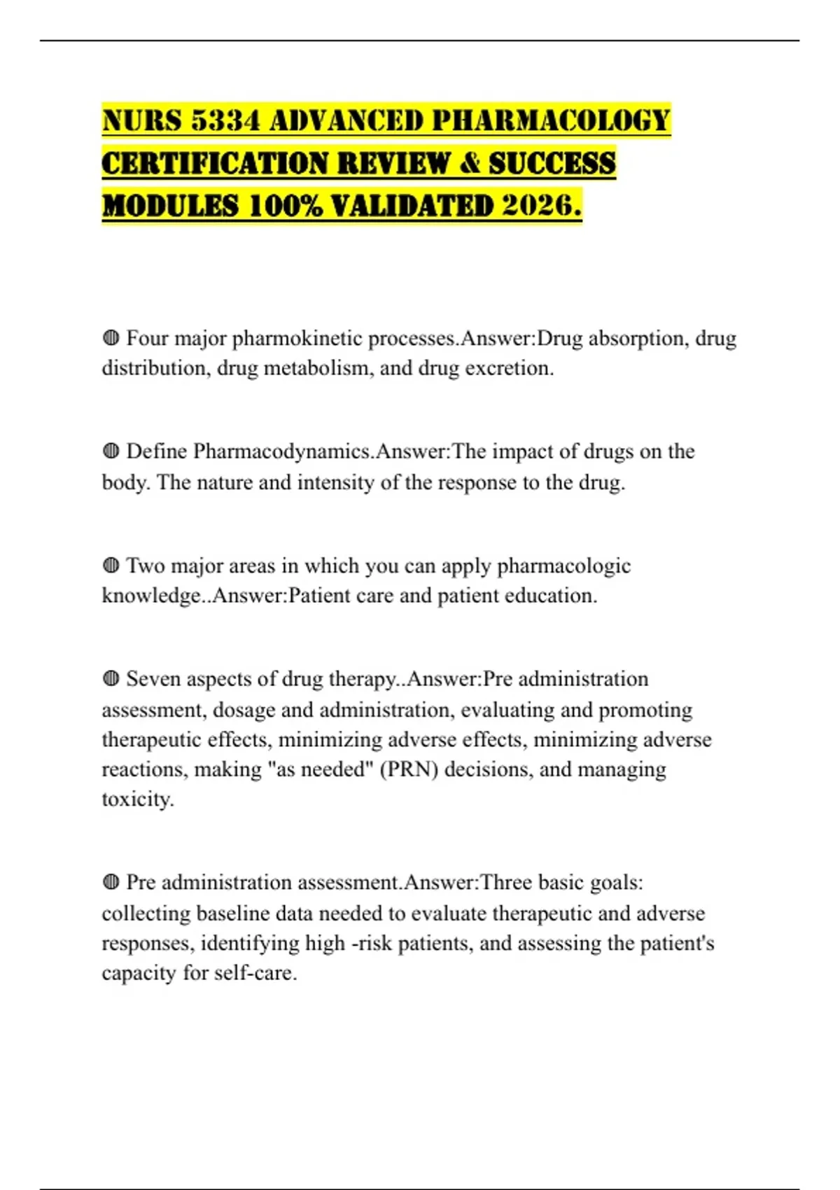 NURS 5334 ADVANCED PHARMACOLOGY CERTIFICATION REVIEW & SUCCESS MODULES 100% VALIDATED 2026.