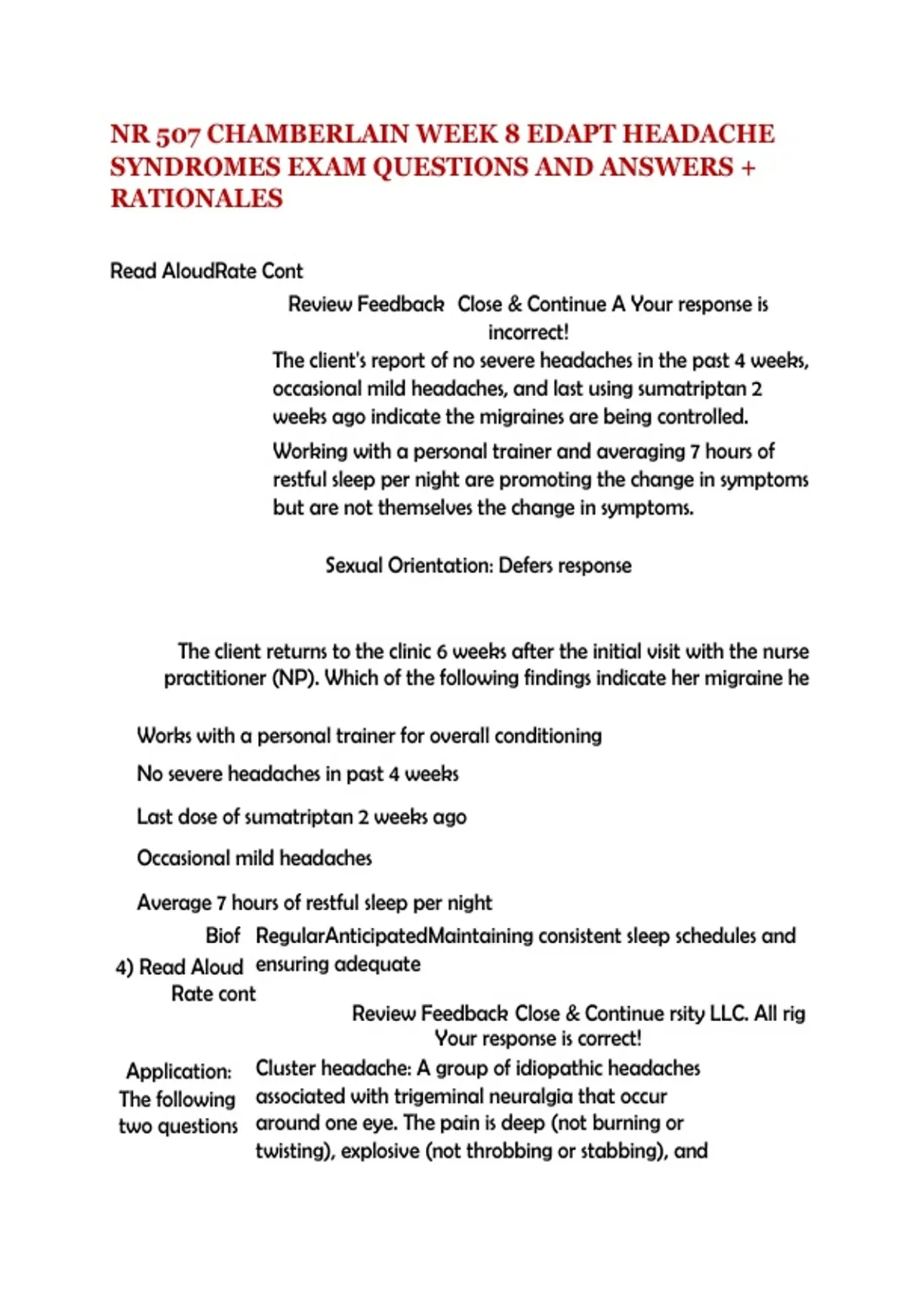 NR 507 CHAMBERLAIN WEEK 8 EDAPT HEADACHE