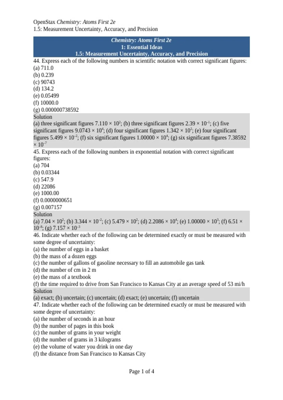 44. Express each of the following numbers in scientific notation with correct significant figures: