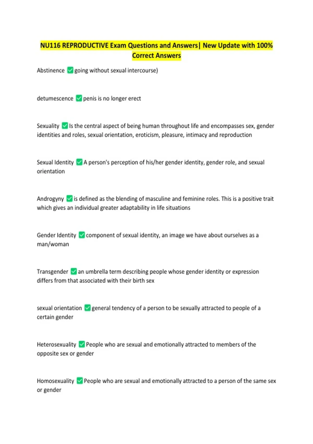 NU116 REPRODUCTIVE Exam Questions and Answers| New Update with 100%