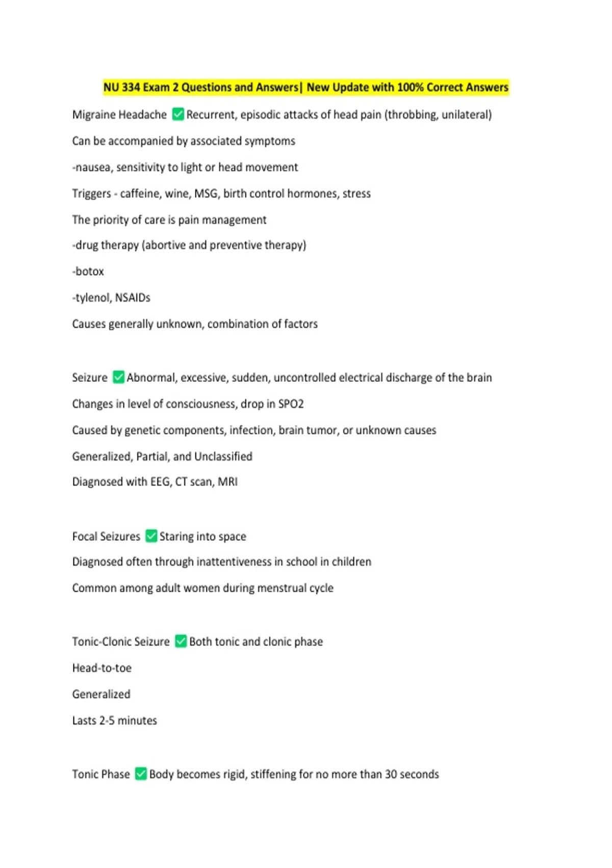NU 334 Exam 2 Questions and Answers| New Update with 100% Correct Answers