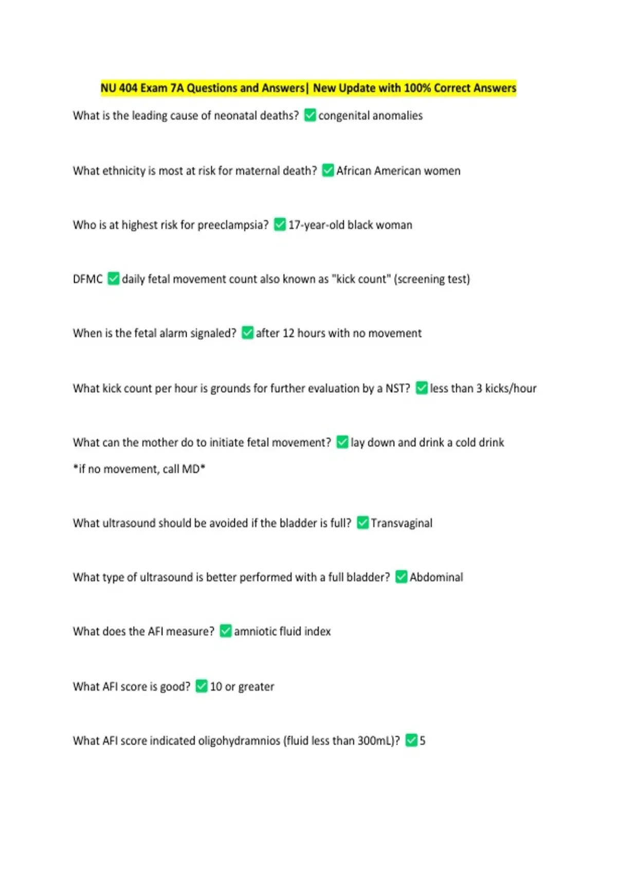 NU 404 Exam 7A Questions and Answers| New Update with 100% Correct Answers