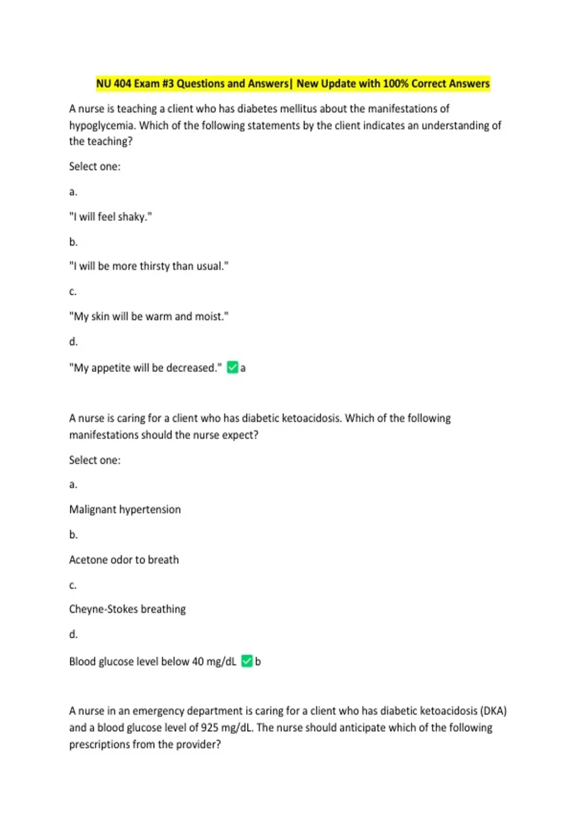 NU 404 Exam #3 Questions and Answers| New Update with 100% Correct Answers