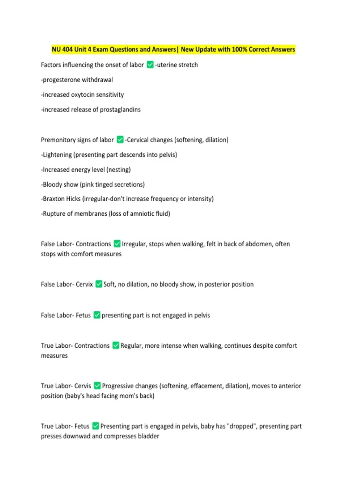 NU 404 Unit 4 Exam Questions and Answers| New Update