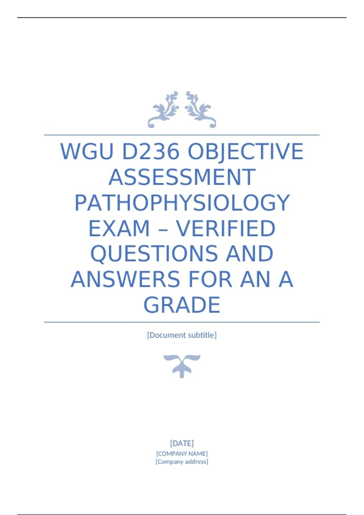 WGU D236 Objective Assessment Pathophysiology Exam – Verified Questions and Answers for an A Grade