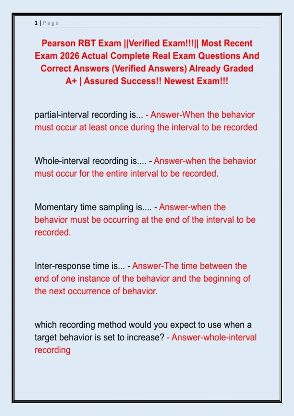 Pearson RBT Exam ||Verified Exam!!!|| Most Recent