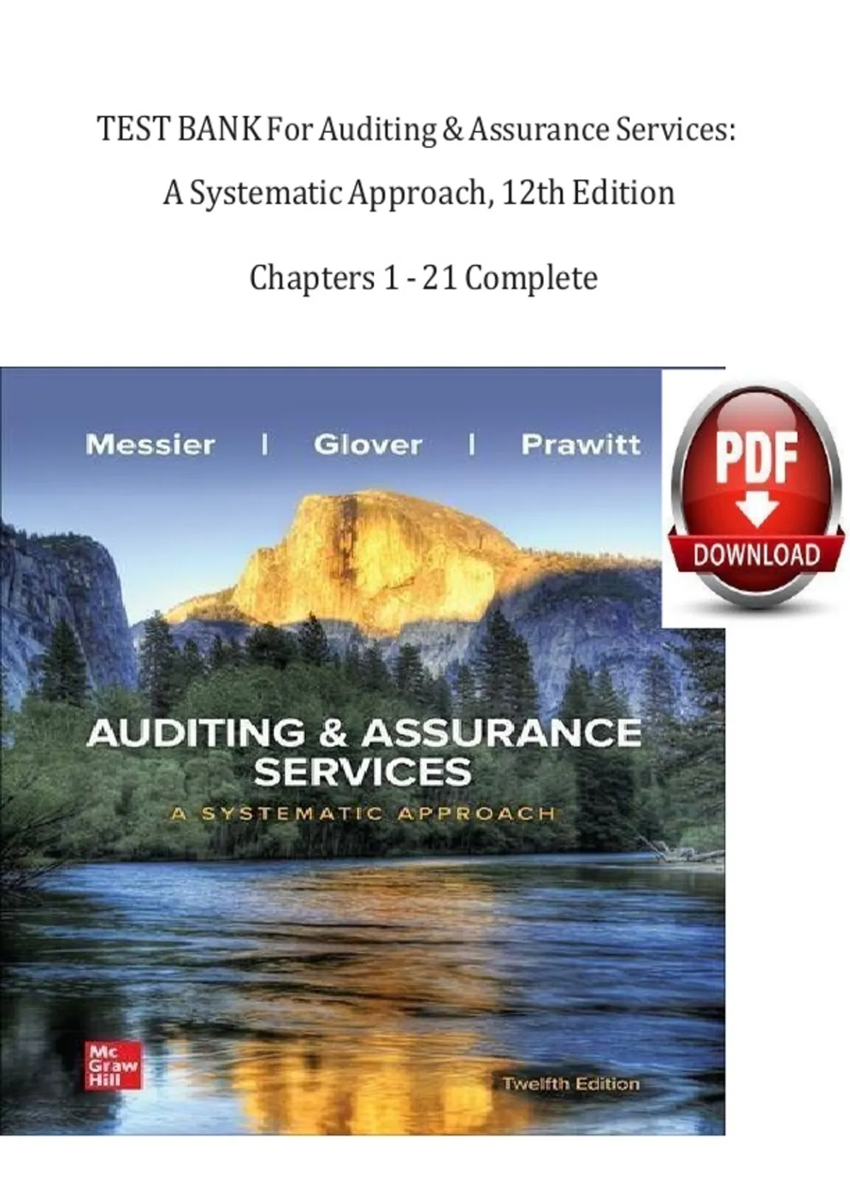 TEST BANK For Auditing & Assurance Services: A Systematic Approach, 12th Edition By William Messier Jr, Steven Glover, Verified Chapters 1 - 21, Complete Newest Version