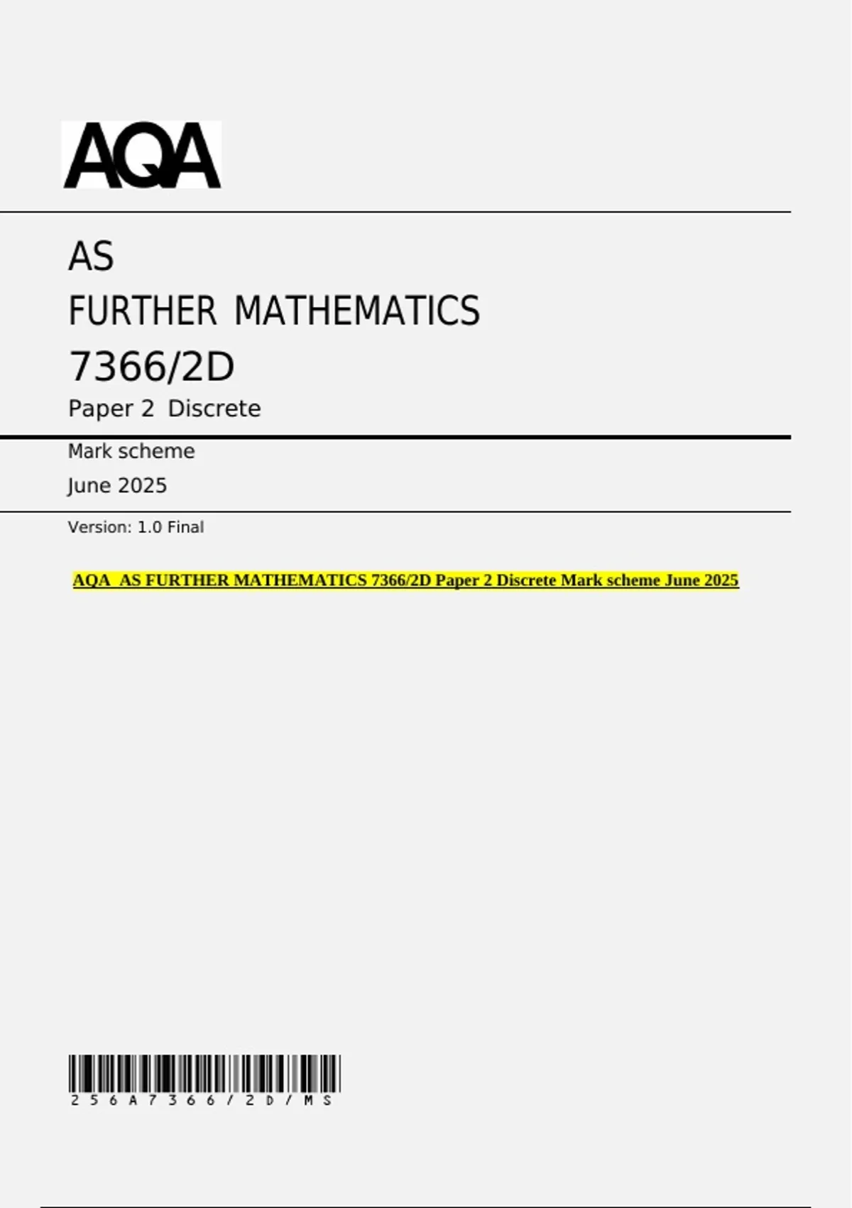 AQA AS FURTHER MATHEMATICS 7366/2D Paper 2 Discrete Mark scheme June 2025