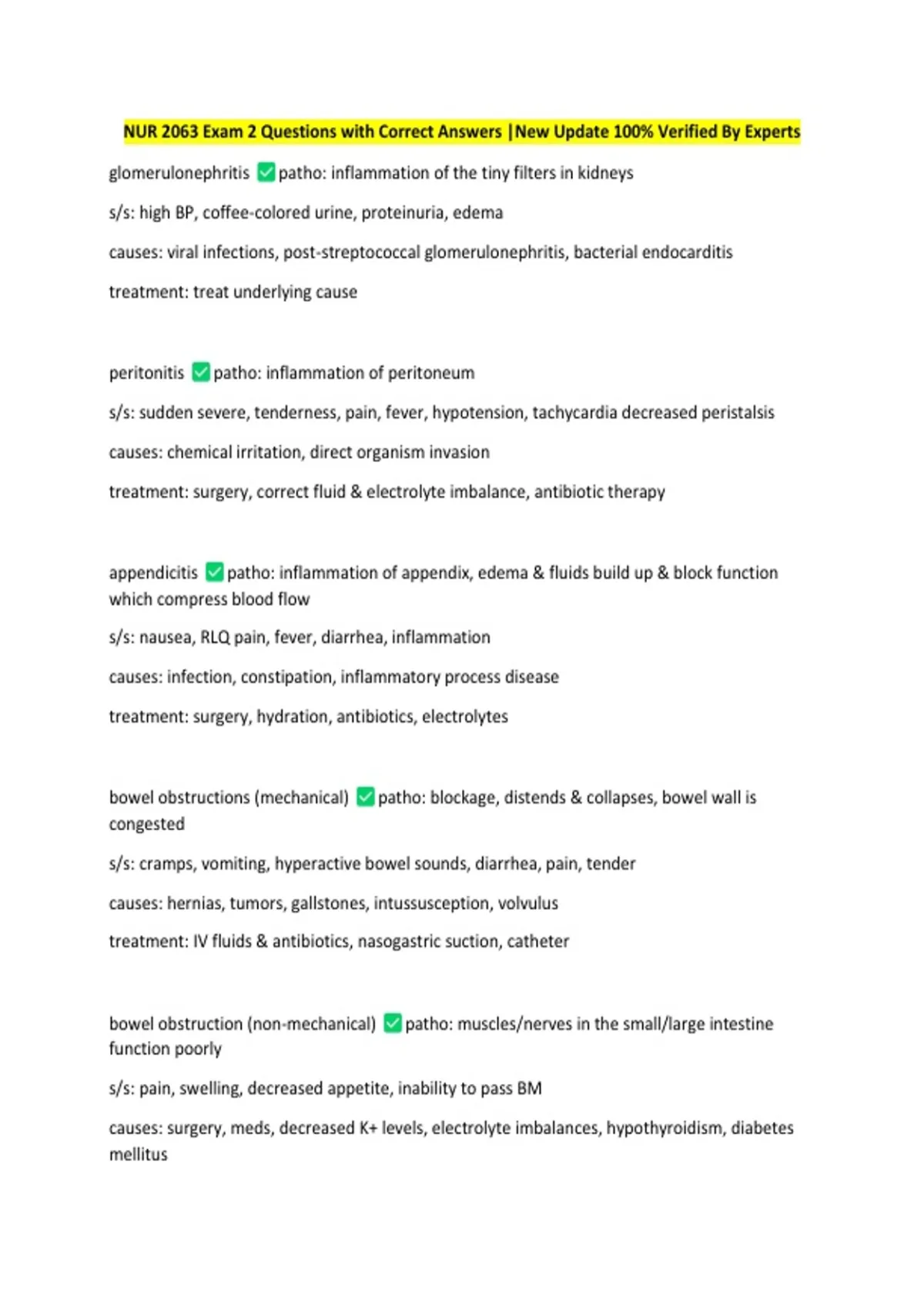 NUR 2063 Exam 2 Questions with Correct Answers |New Update 100% Verified By Experts