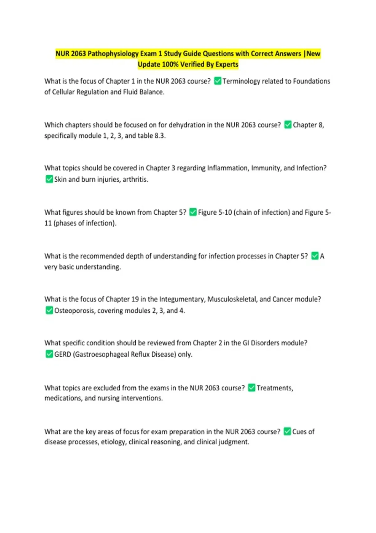 NUR 2063 Pathophysiology Exam 1 Study Guide Questions with Correct Answers |New