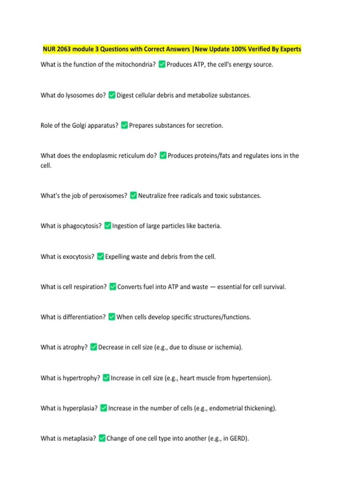 NUR 2063 module 3 Questions with Correct Answers |New Update 100% Verified By Experts