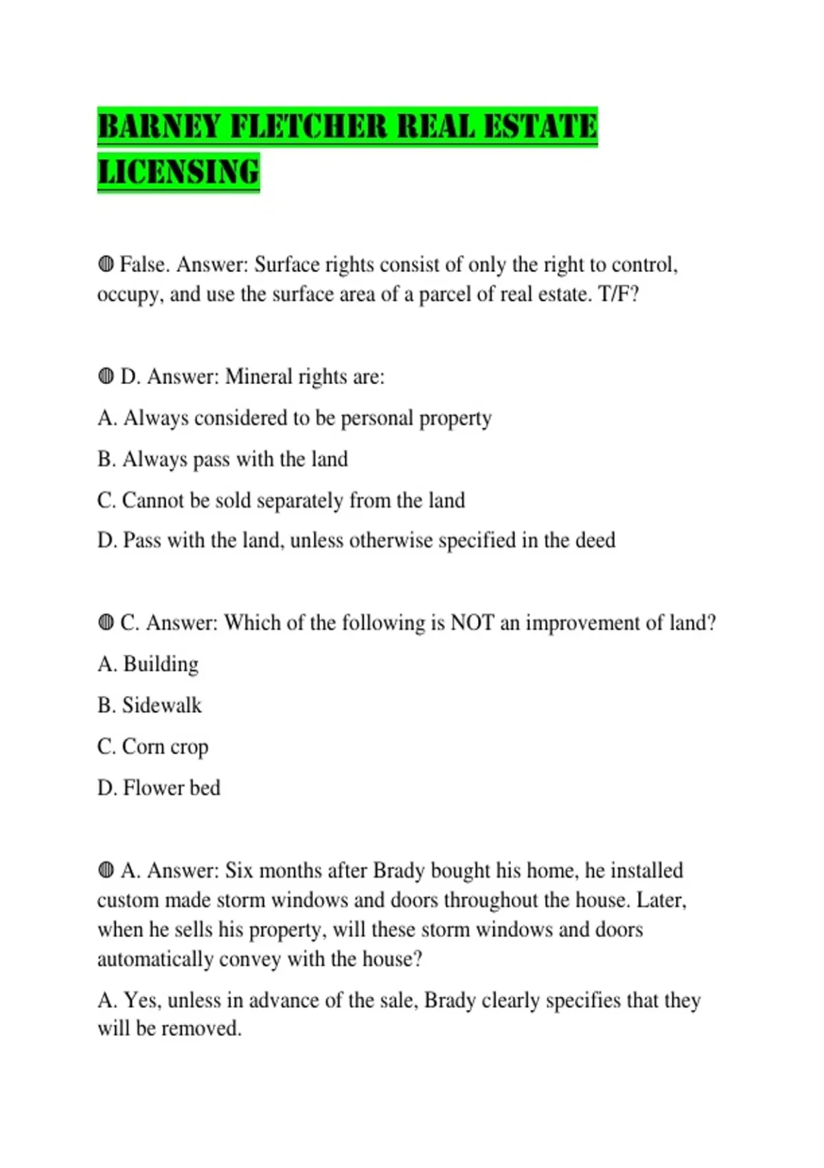 BARNEY FLETCHER REAL ESTATE LICENSING