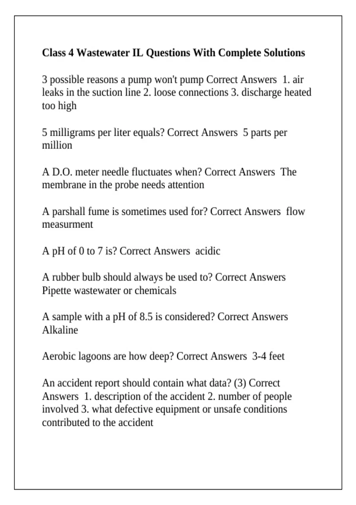 Aerobic lagoons are how deep? Correct Answers 3-4 feet