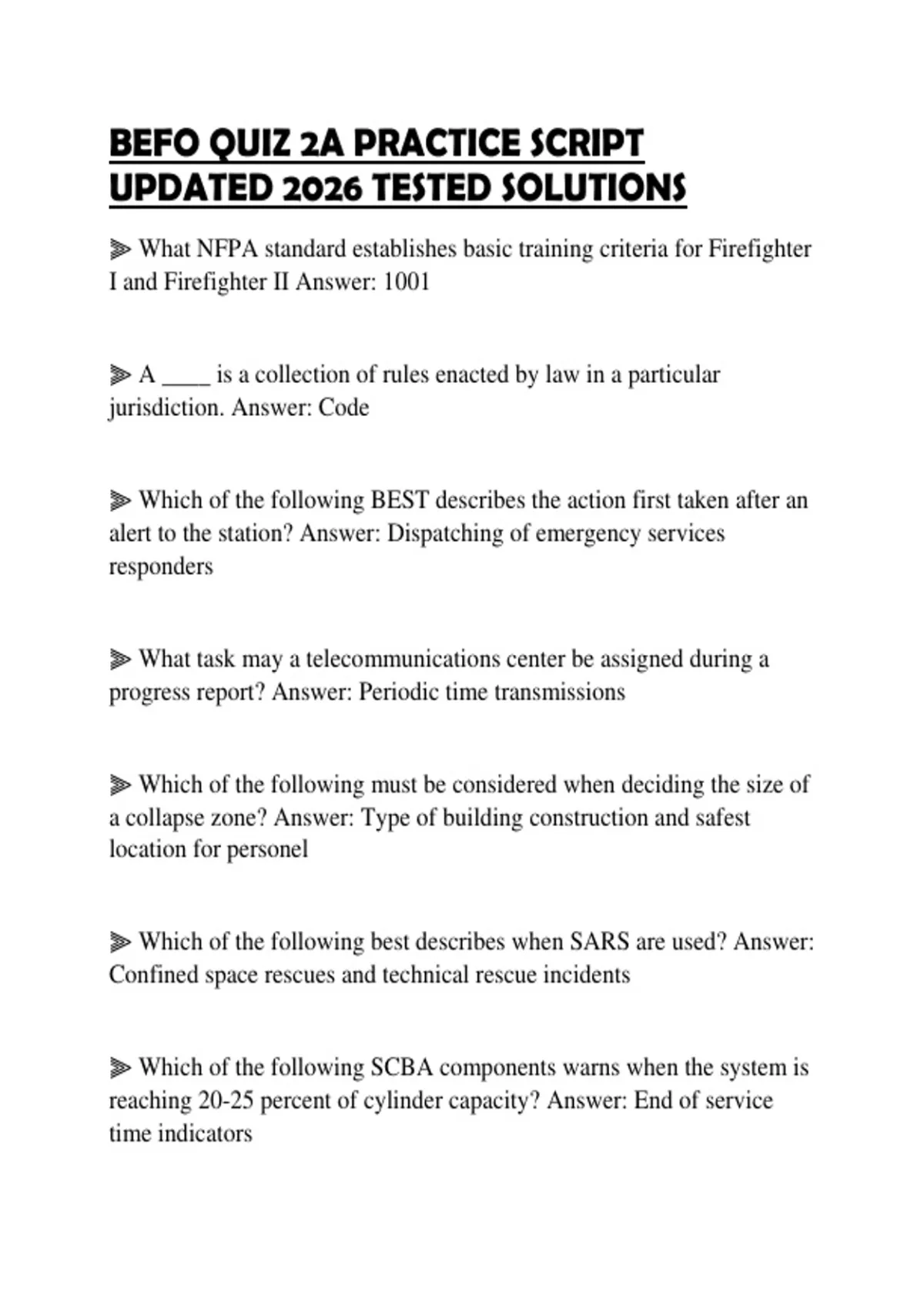 BEFO QUIZ 2A PRACTICE SCRIPT UPDATED 2026 TESTED SOLUTIONS