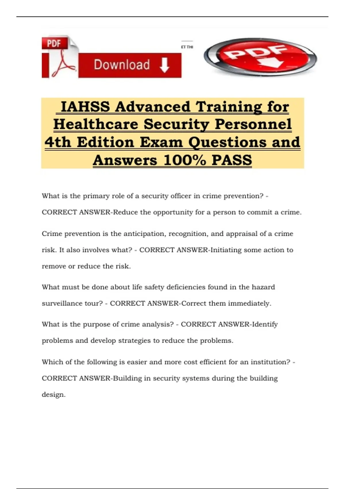 IAHSS Advanced Training for Healthcare Security Personnel 4th Edition Exam Questions and Answers 100% PASS