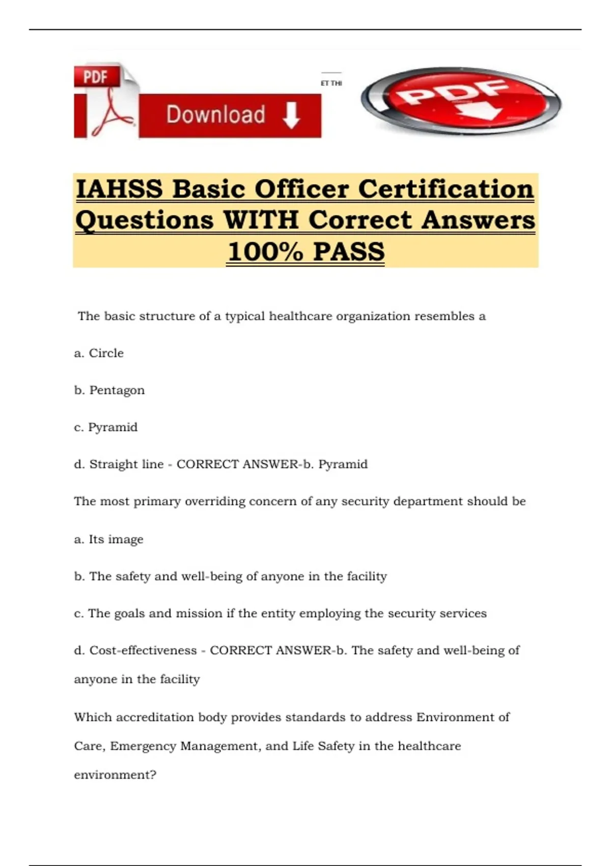IAHSS Basic Officer Certification Questions WITH Correct Answers 100% PASS