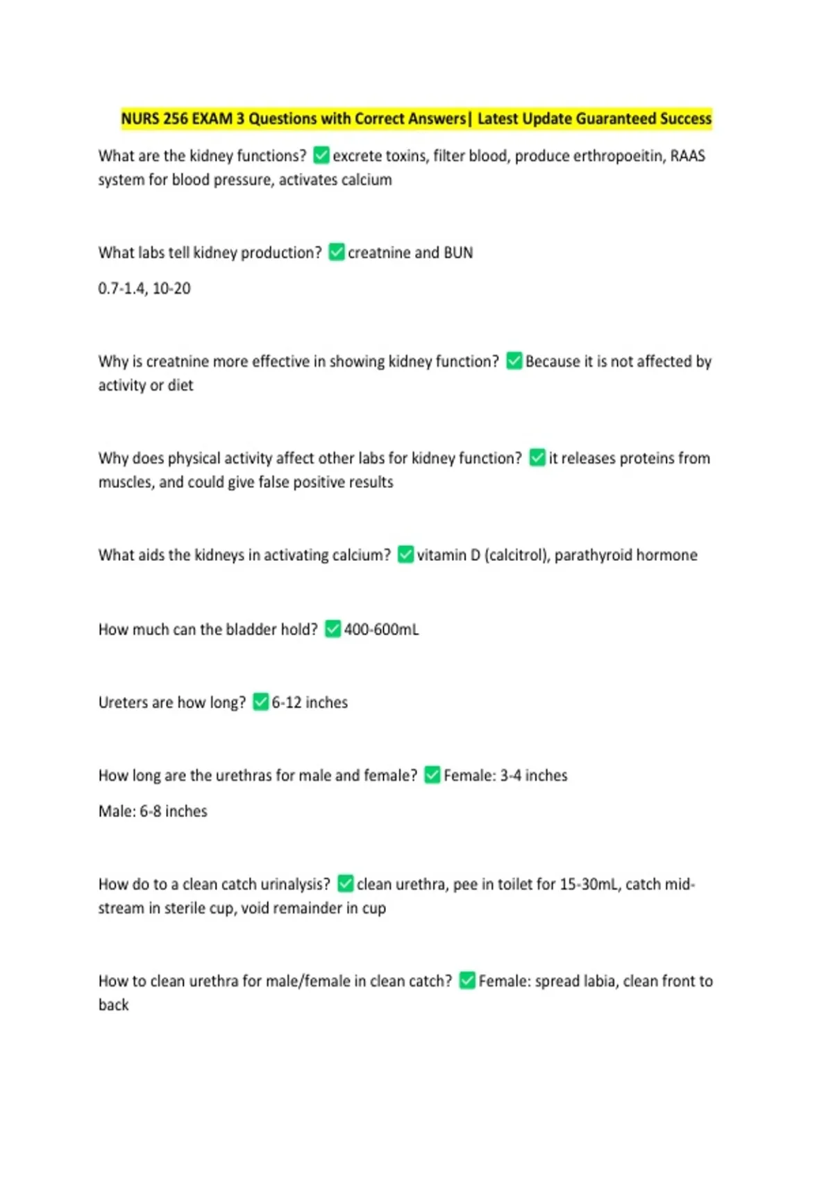 NURS 256 EXAM 3 Questions with Correct Answers| Latest Update Guaranteed Success