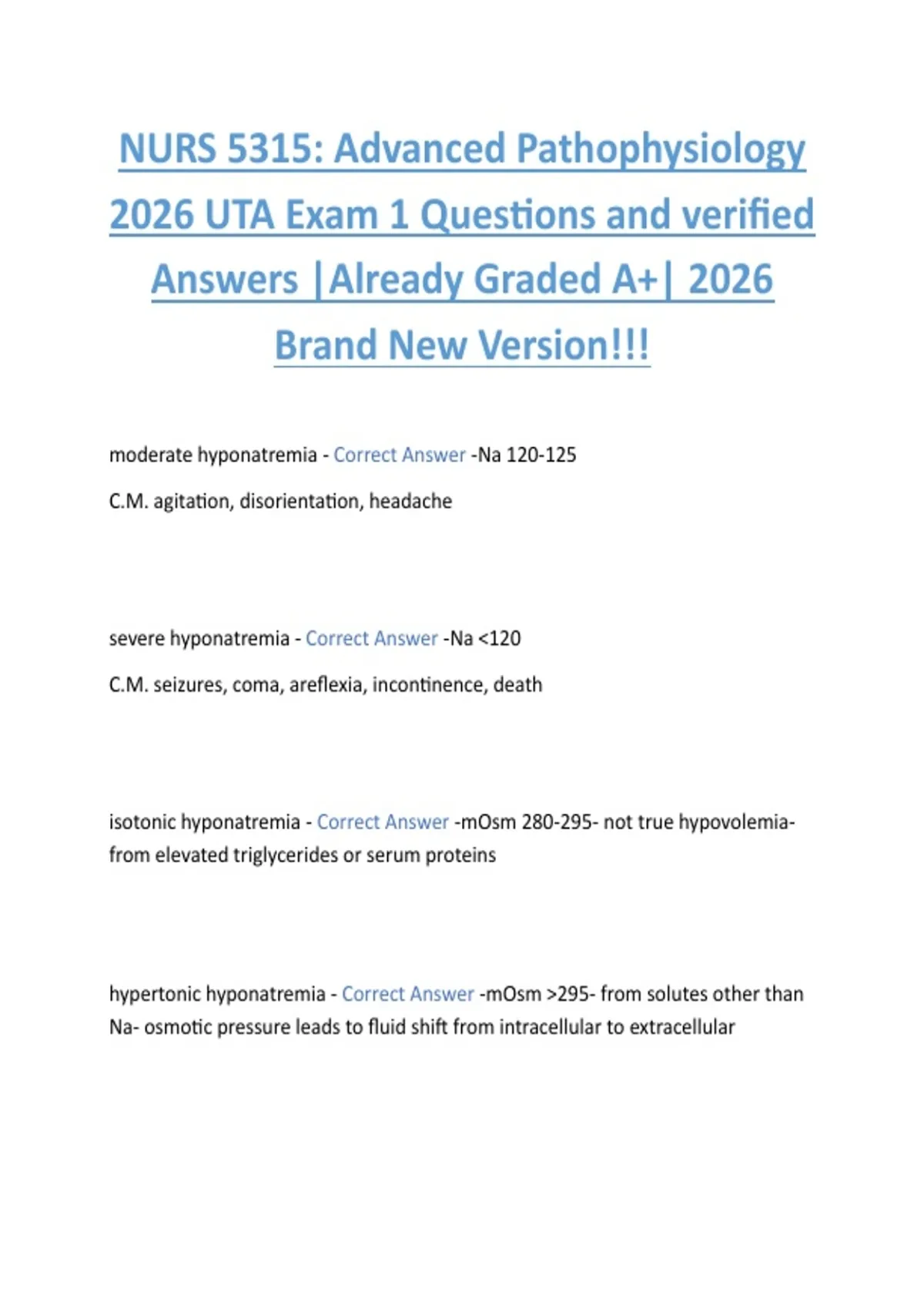 isotonic hyponatremia - Correct Answer -mOsm 280-295- not true hypovolemia-