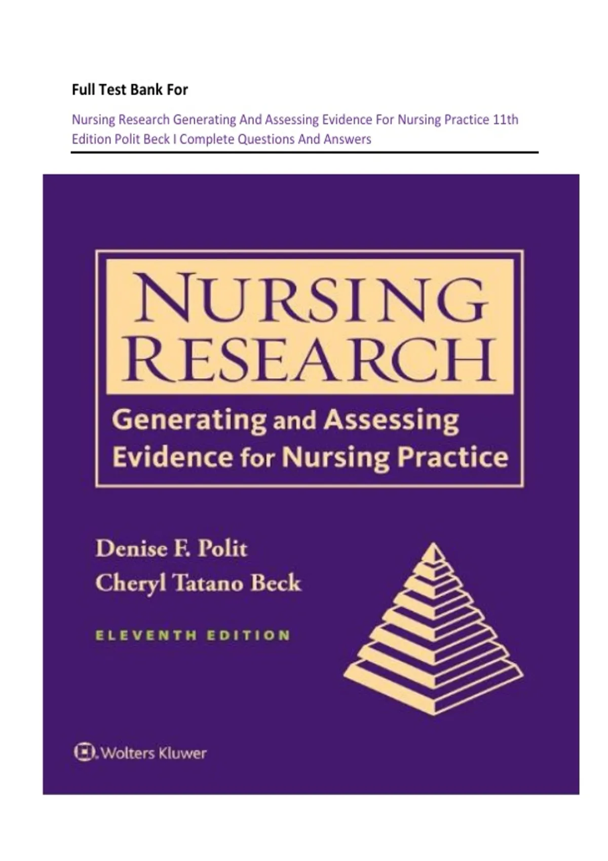 Nursing Research Generating And Assessing Evidence For Nursing Practice 11th