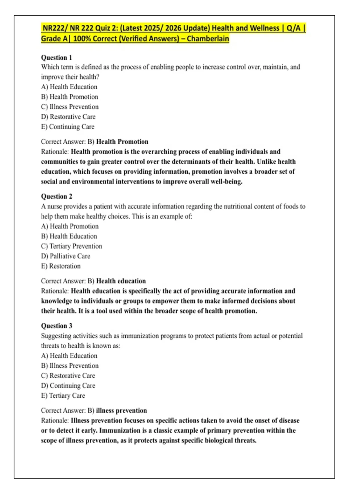 NR222/ NR 222 Quiz 2: (Latest 2025/ 2026 Update) Health and Wellness | Q/A |