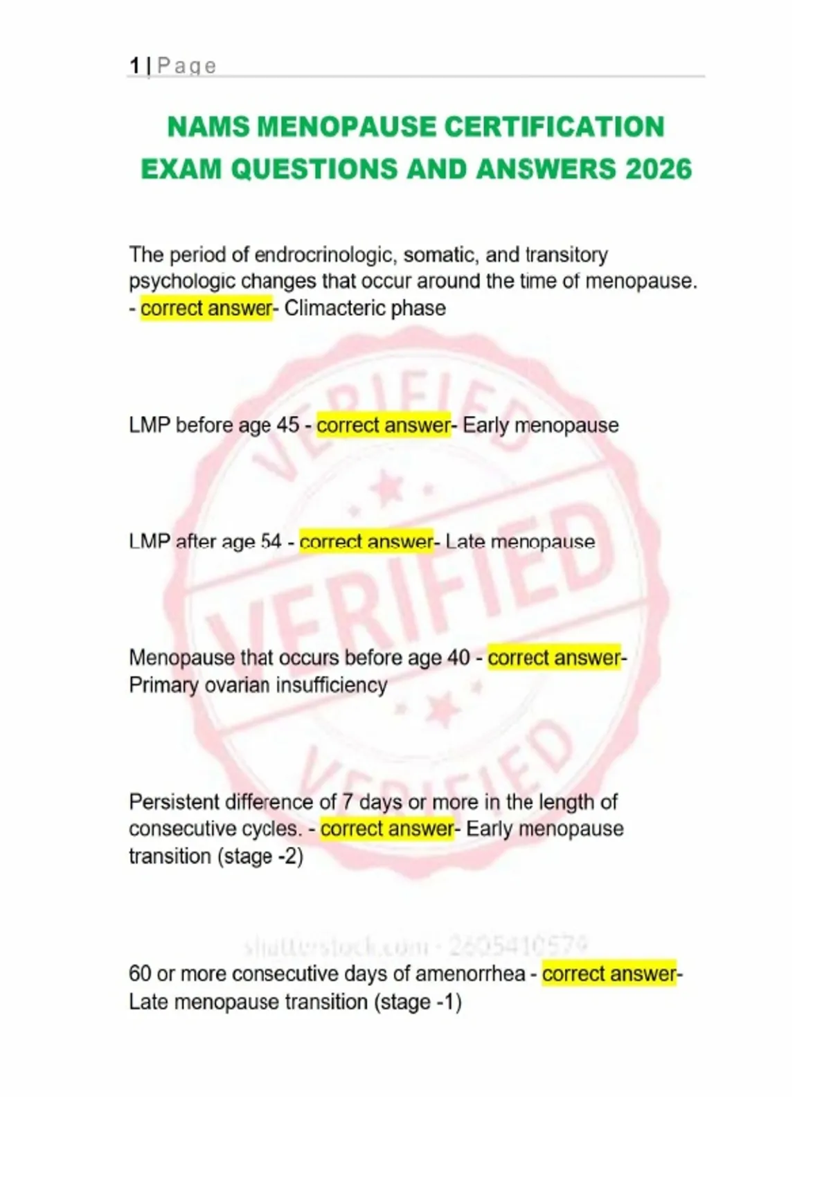 NAMS Menopause Certification Exam – Questions and Answers, 2026 Edition.