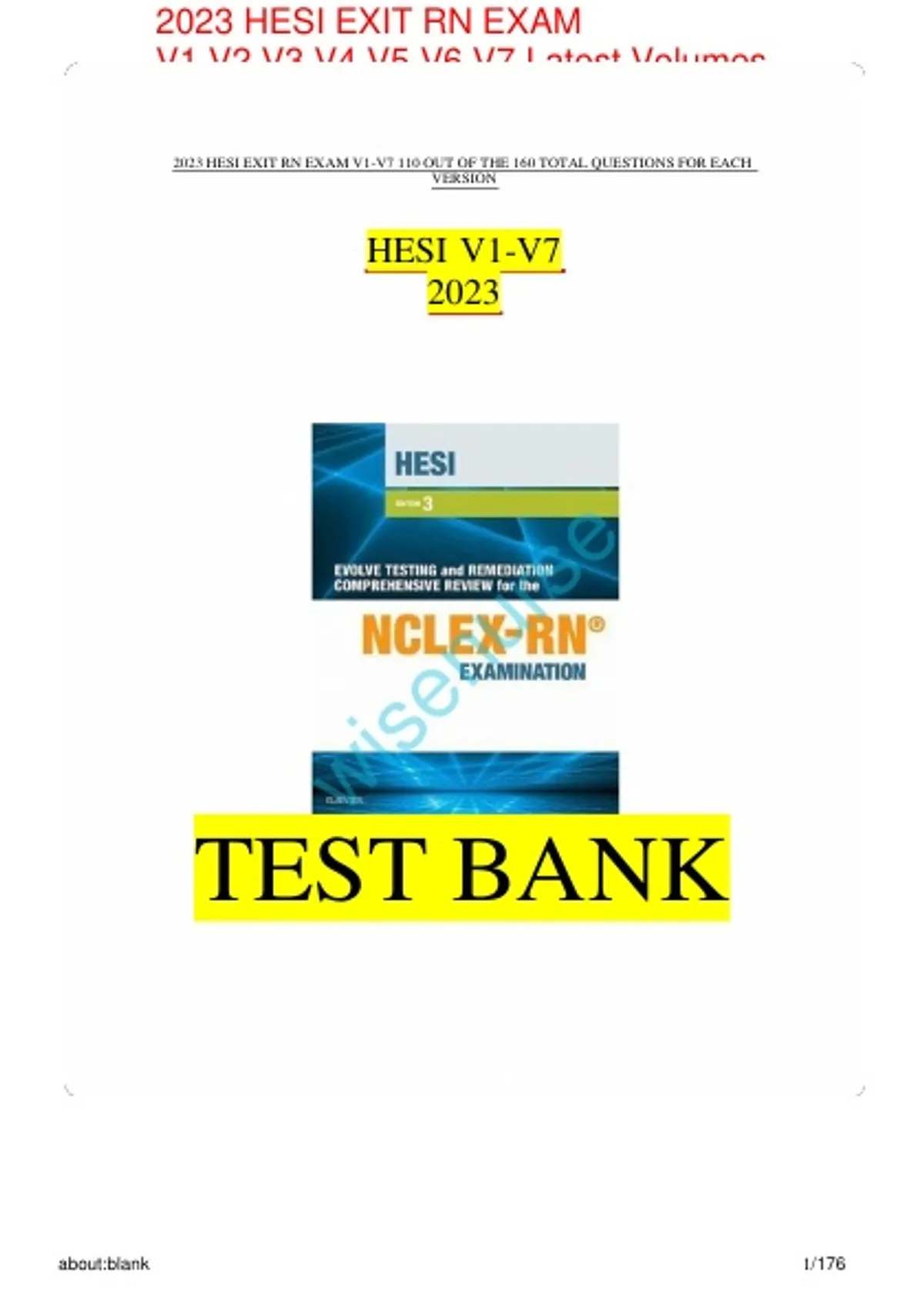 Test Bank for 2023 HESI Exit RN Exam | 7 Latest Versions with 160 Questions Each | Actual Exam Questions with Verified Correct Answers | 100% Guaranteed Pass A+ Guide