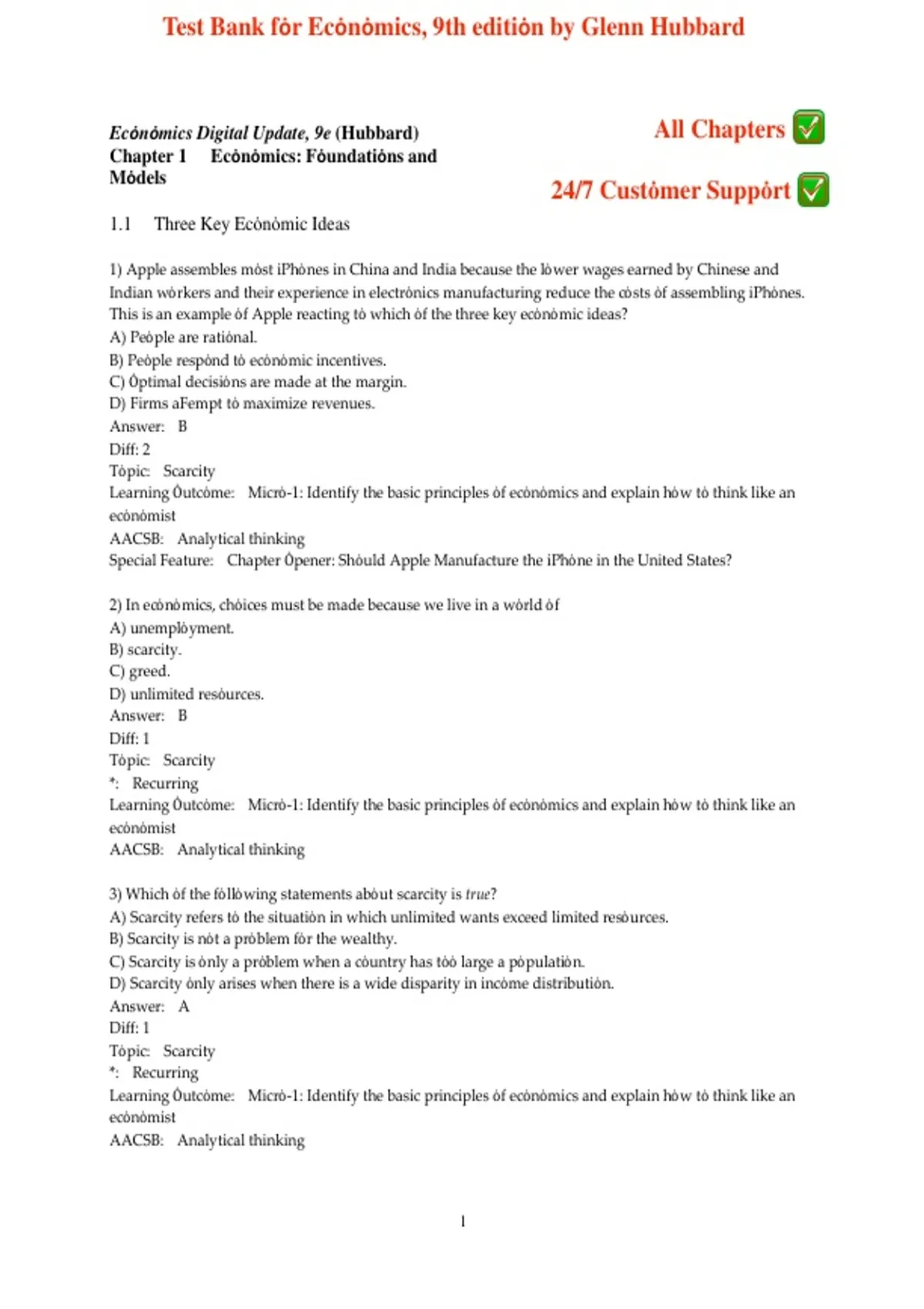 This Test Bank for Economics, 9th Edition by Glenn Hubbard & Anthony Patrick O’Brien (ISBN 9780138300036) includes all chapters with verified questions and accurate answers, covering foundational principles of microeconomics and macroeconomics, market systems, supply and demand, government policy, labor and factor markets, economic growth, monetary and fiscal policy, and international economics. Ideal for quizzes, midterms, finals, and comprehensive exam preparation in college economics courses.
