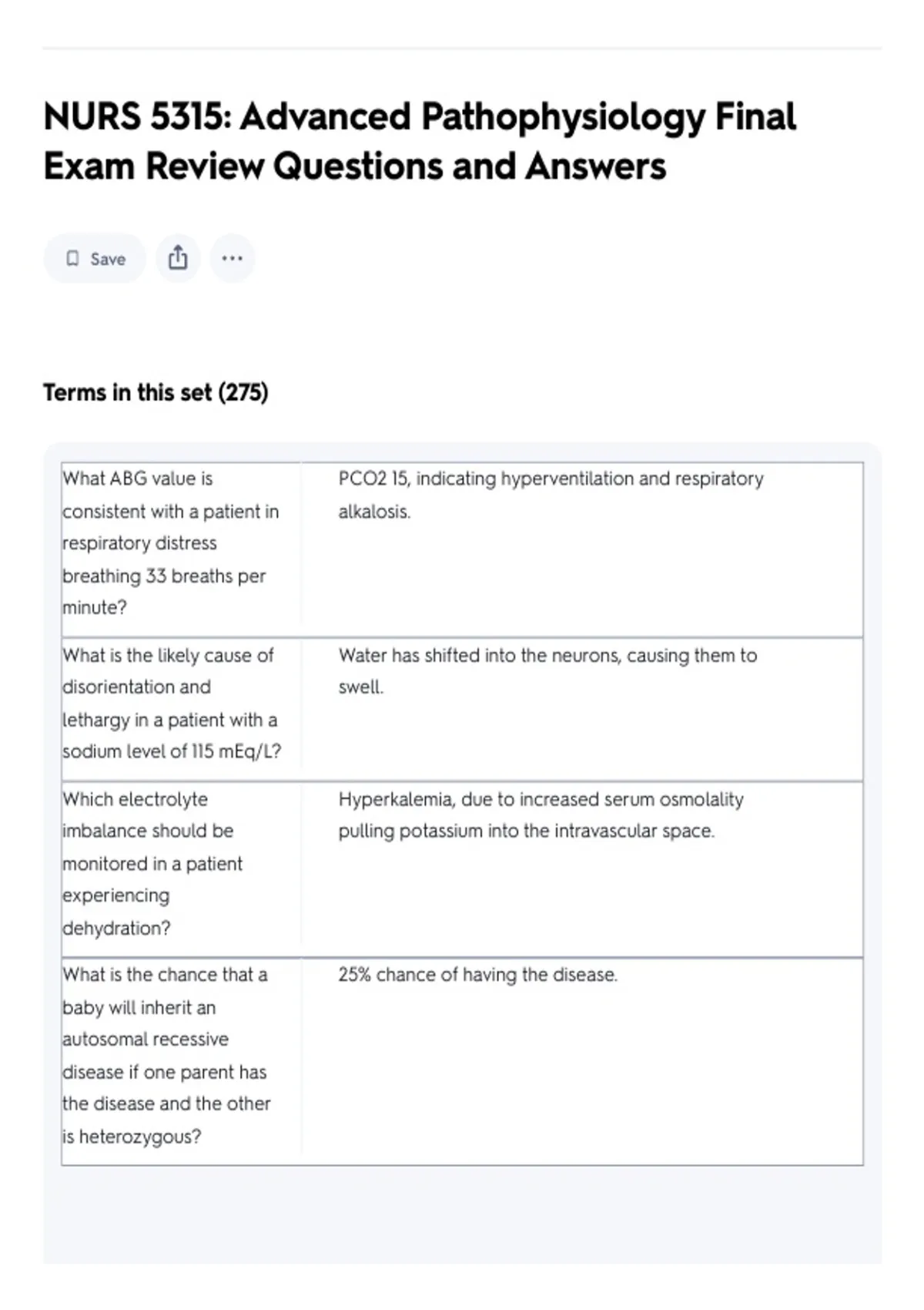 NURS 5315: Advanced Pathophysiology Final Exam Review Questions and Answers