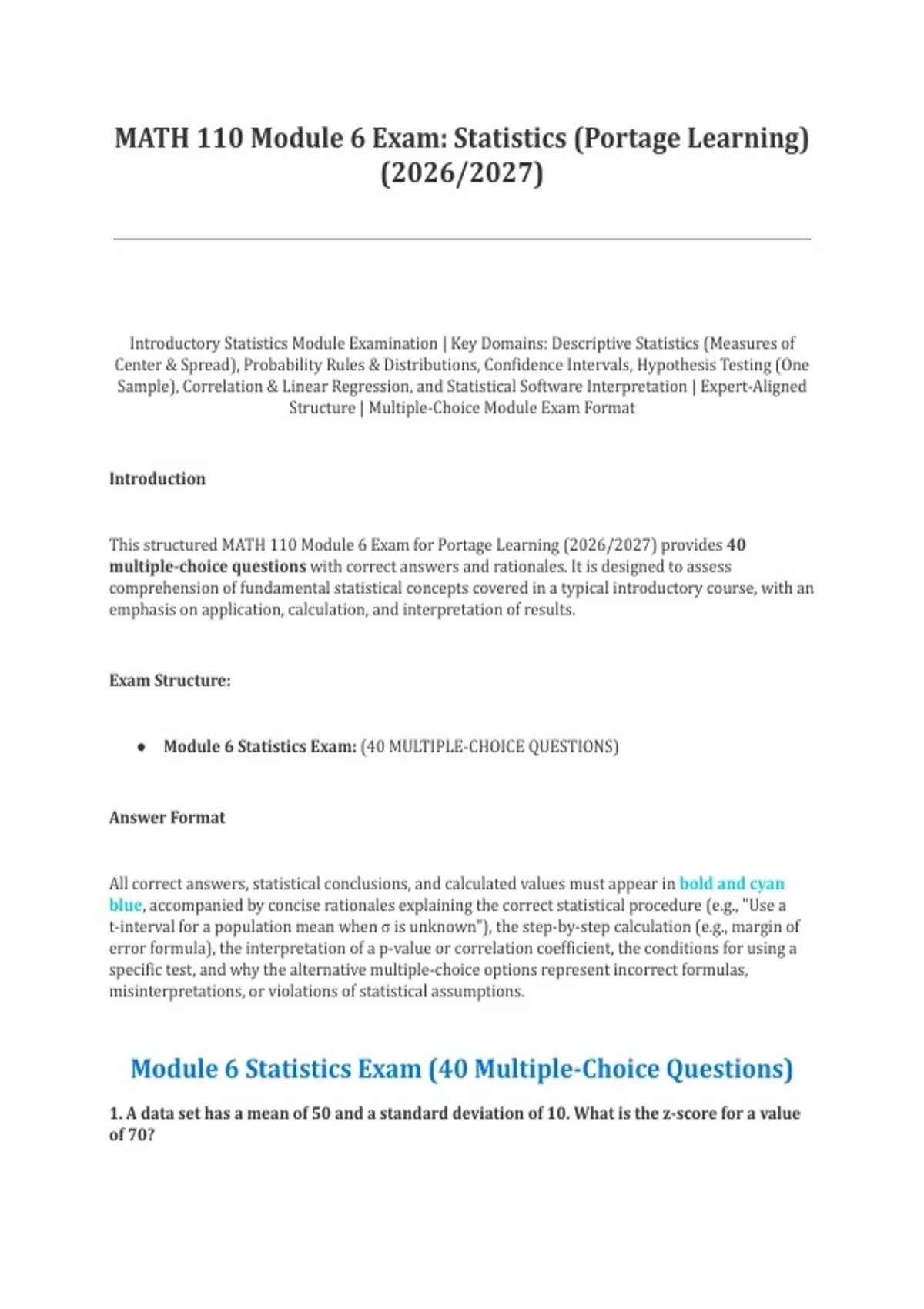 This structured MATH 110 Module 6 Exam for Portage Learning (2026/2027) provides 40