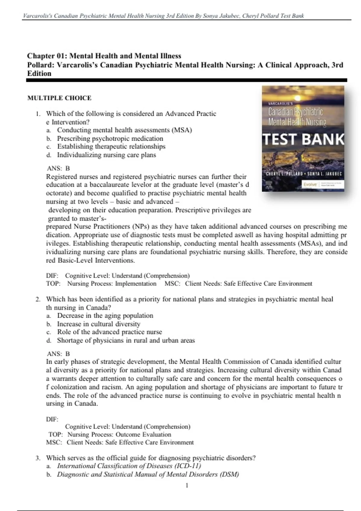 , Varcarolis's Canadian Psychiatric Mental Health Nursing 3rd Edition By Sonya Jakubec, Cheryl Pollard Test Bank