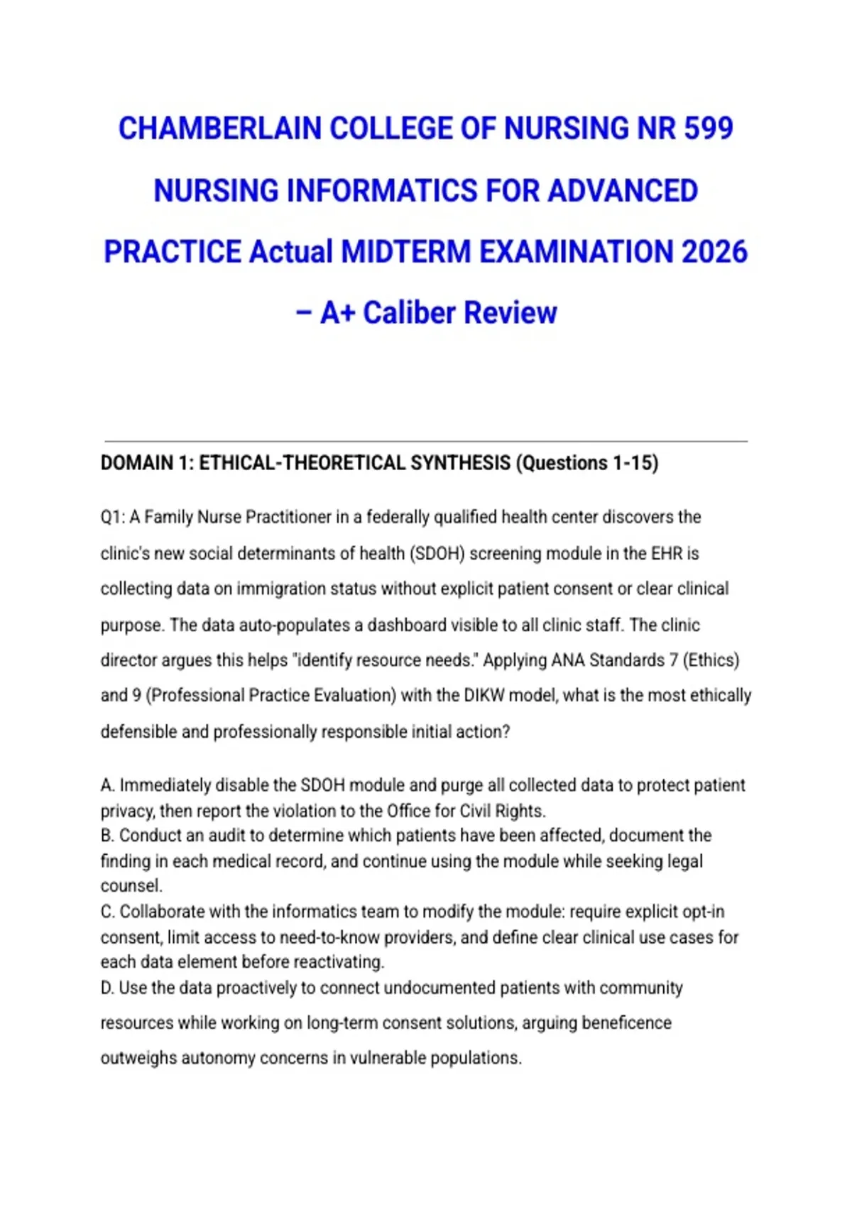 Q1: A Family Nurse Practitioner in a federally qualified health center discovers the
