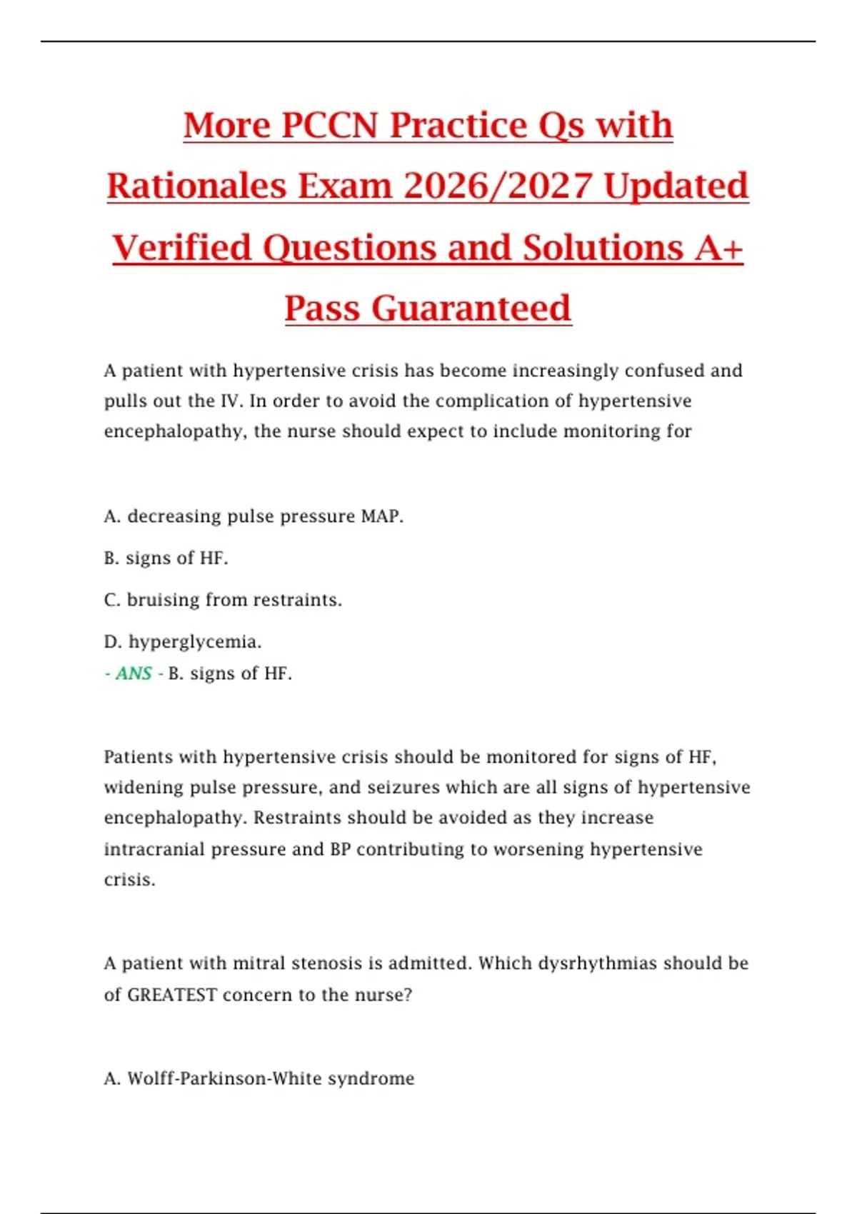 More PCCN Practice Qs with Rationales Exam 2026/2027 Updated Verified Questions and Solutions A+ Pass Guaranteed