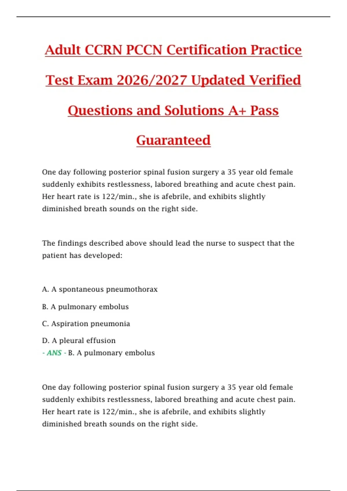 - ANS - B. A pulmonary embolus