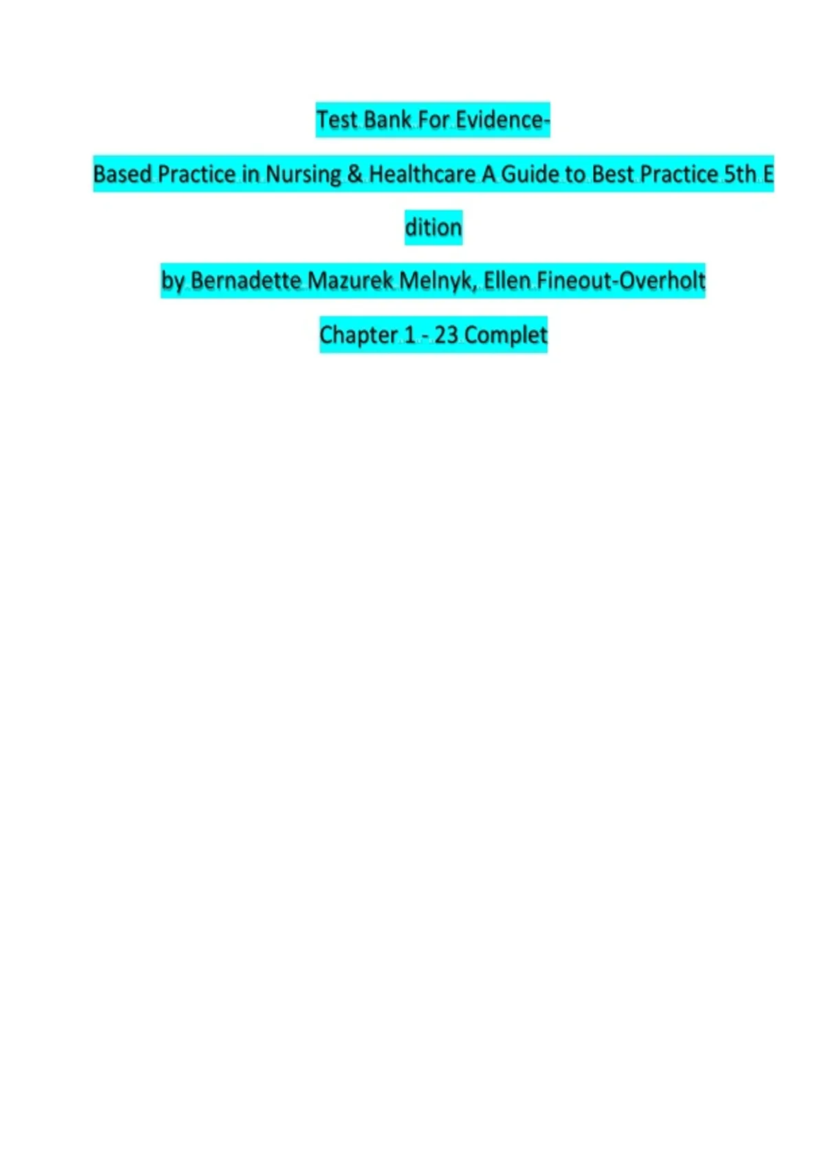 Test Bank for Evidence-Based Practice in Nursing & Healthcare, 4th Edition by Melnyk – Nursing & Health Sciences Exam Resource