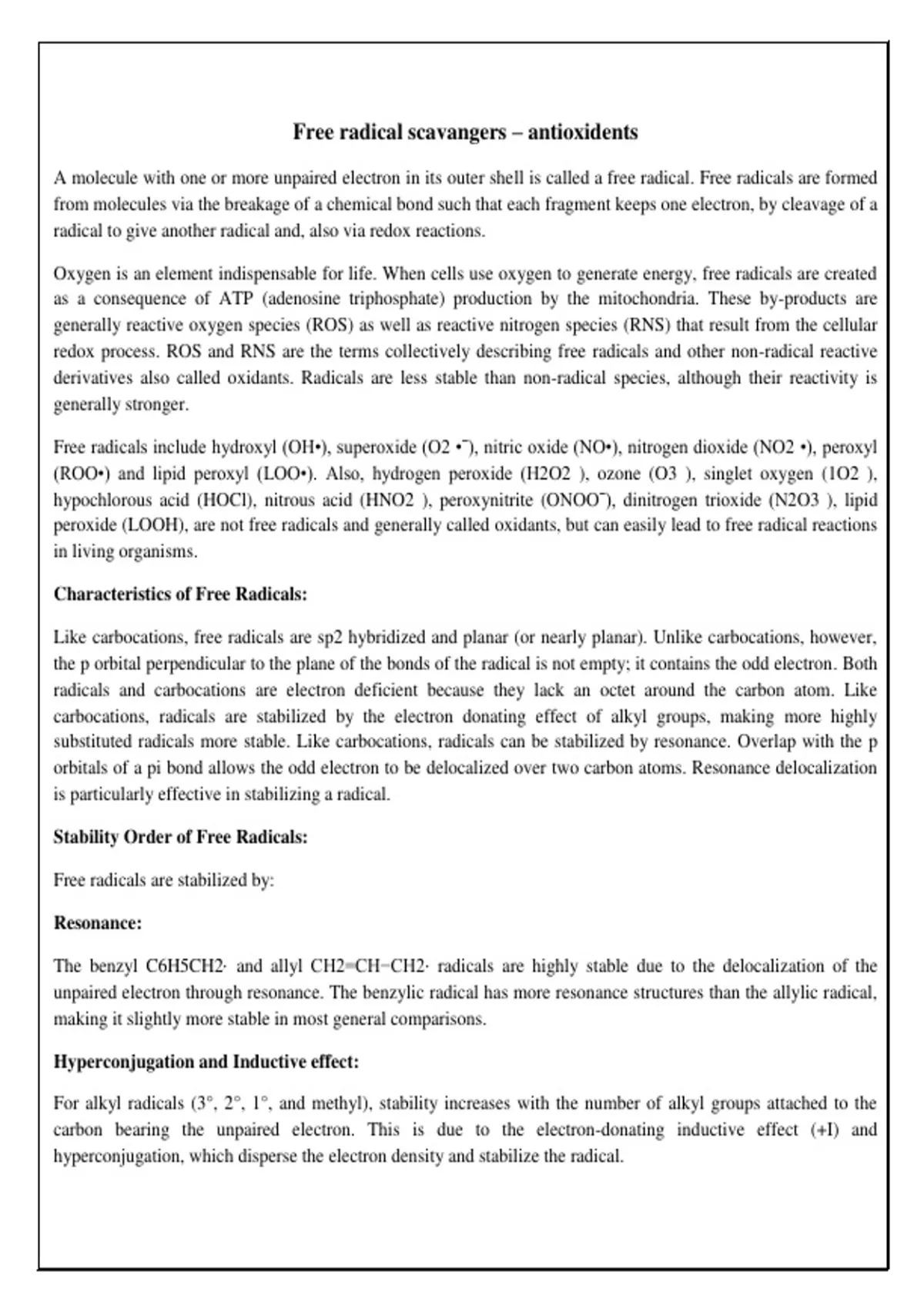 peroxide (LOOH), are not free radicals and generally called oxidants, but can easily lead to free radical reactions
