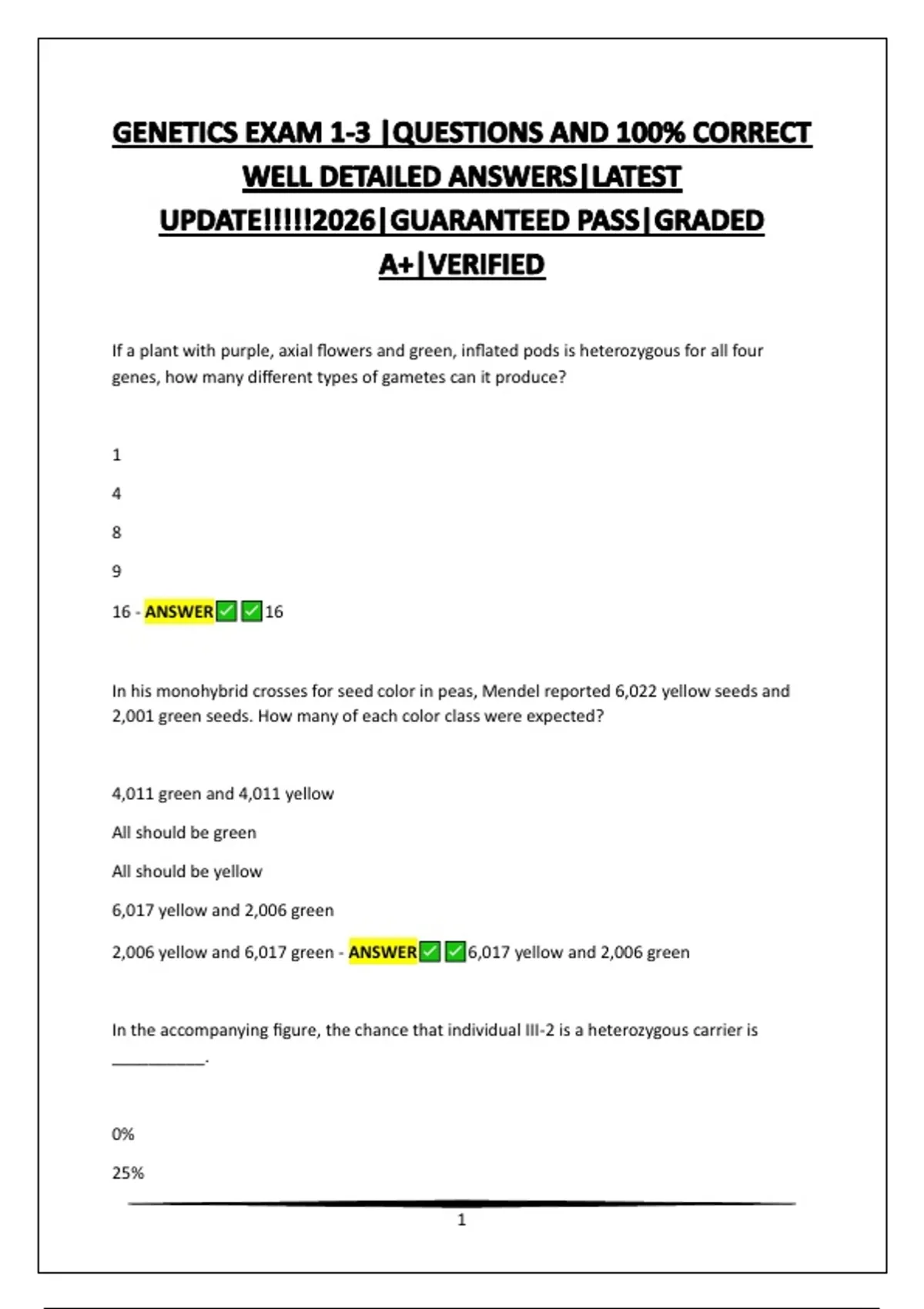 GENETICS EXAM 1-3 |QUESTIONS AND 100% CORRECT WELL DETAILED ANSWERS|LATEST UPDATE!!!!!2026|GUARANTEED PASS|GRADED A+|VERIFIED