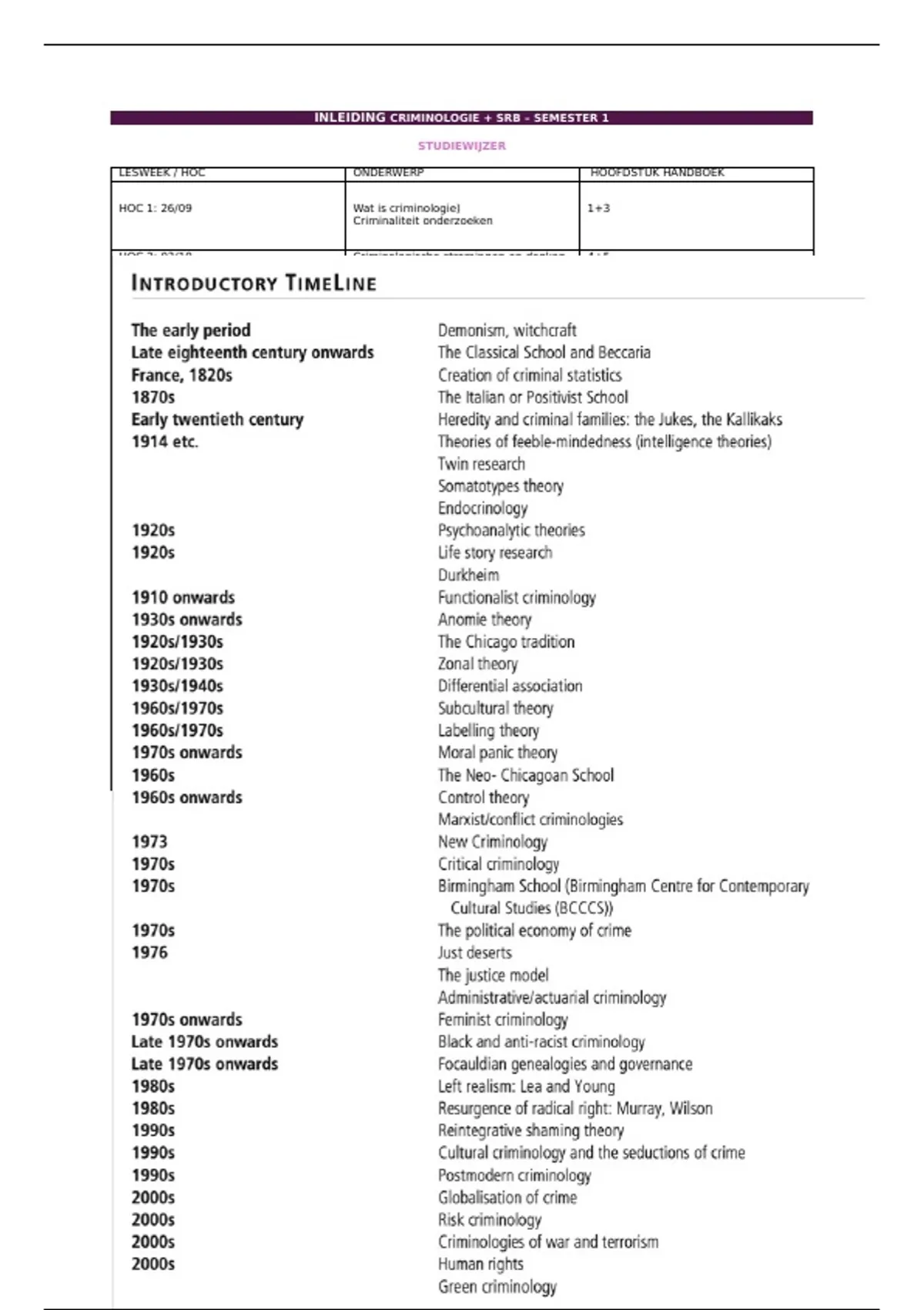 , HOC 1: INLEIDING CRIMINOLOGIE + SRB