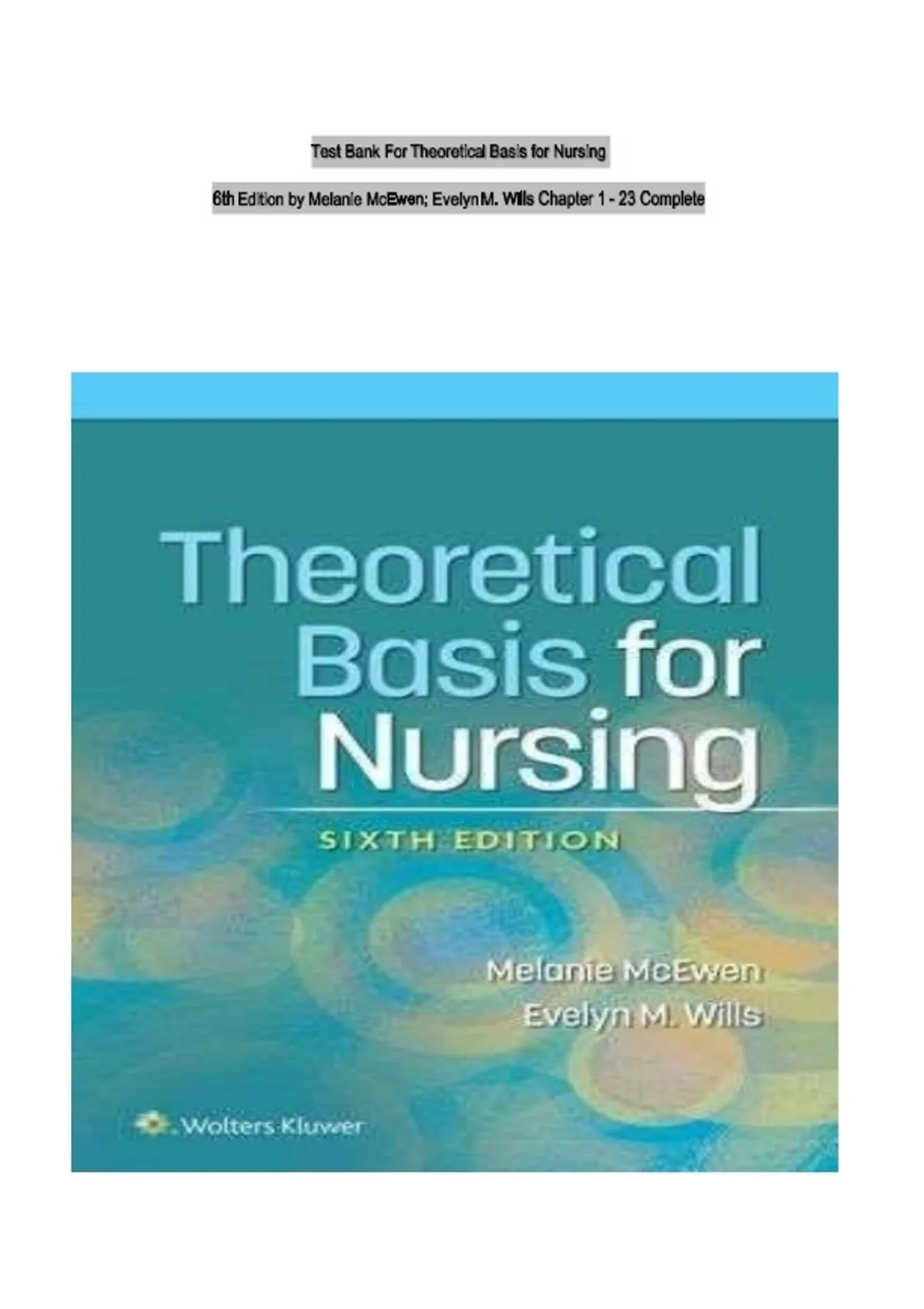 Test Bank For Theoretical Basis for Nursing, 6th American Edition, by Melanie McEwen; Evelyn M. Wills, All Chapters included with verified Answers