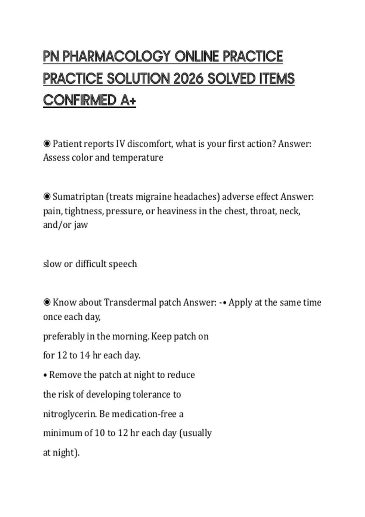 PN PHARMACOLOGY ONLINE PRACTICE PRACTICE SOLUTION 2026 SOLVED ITEMS CONFIRMED A+