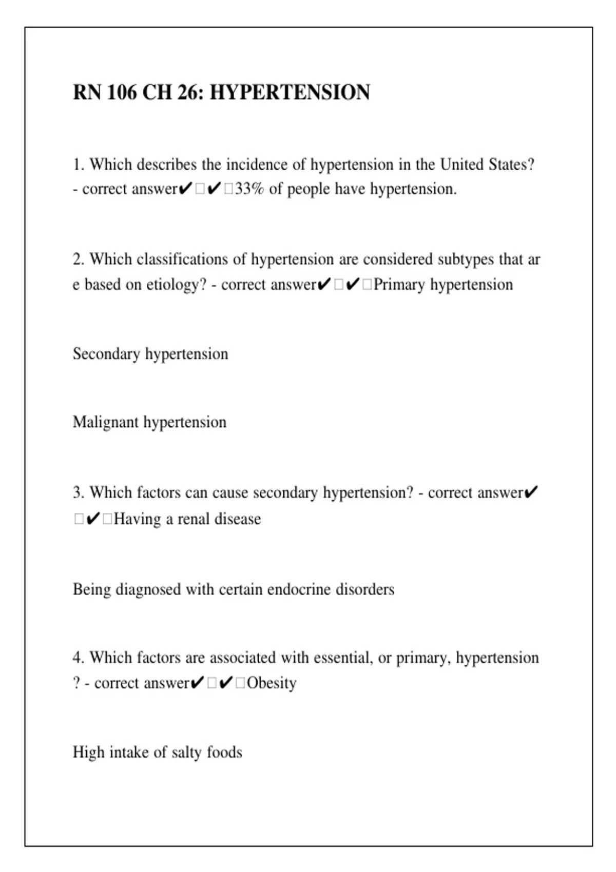 rn 106 ch 26 hypertension. Questions with Verified Solutions