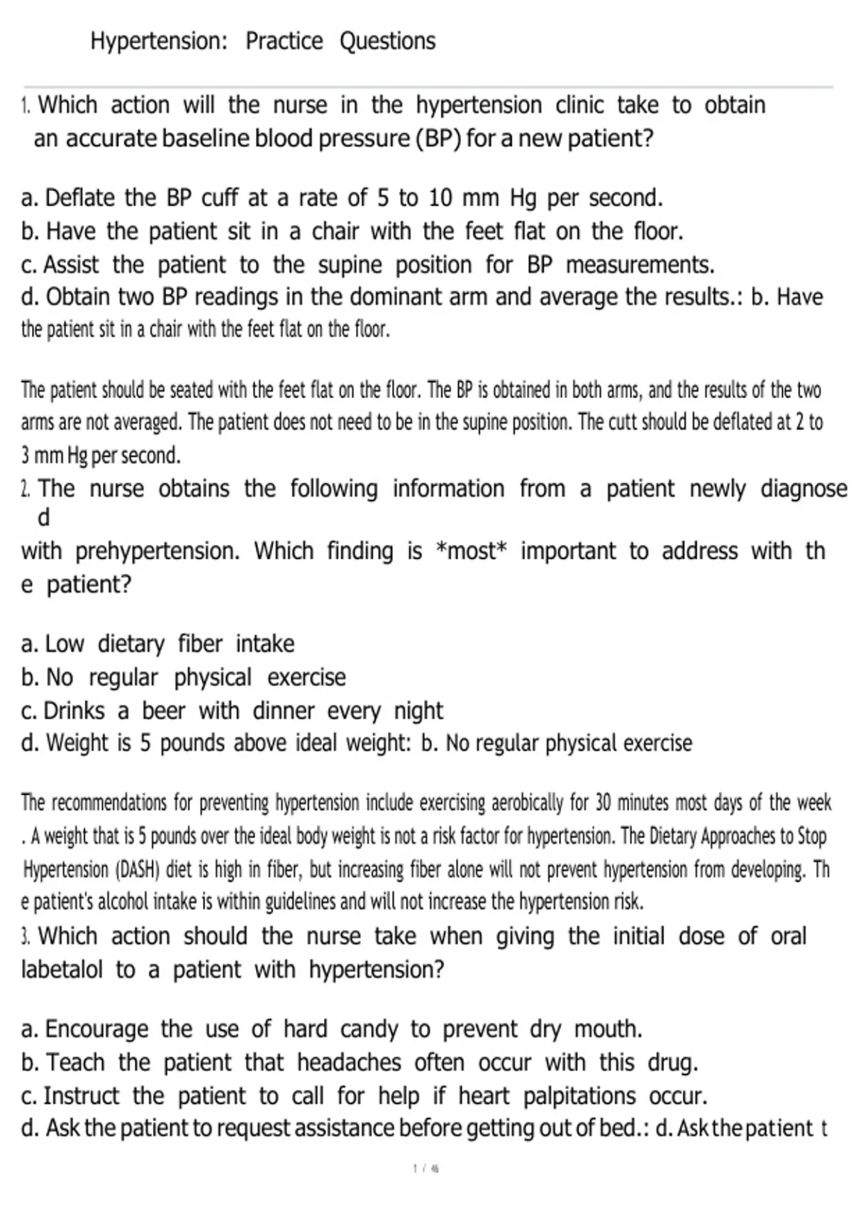 HYPERTENSION PRACTICE QUESTIONS WITH CORRECT ANSWERS