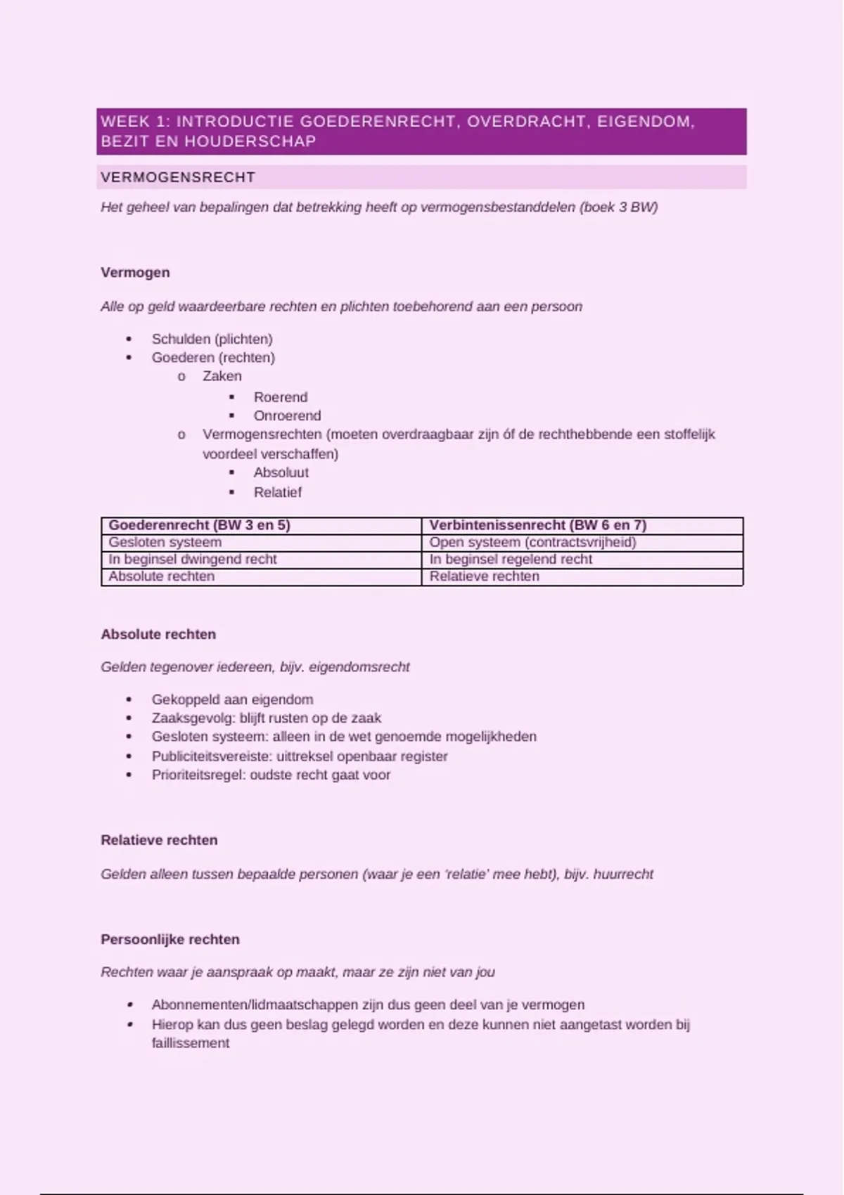 WEEK 1: INTRODUCTIE GOEDERENRECHT, OVERDRACHT, EIGENDOM,