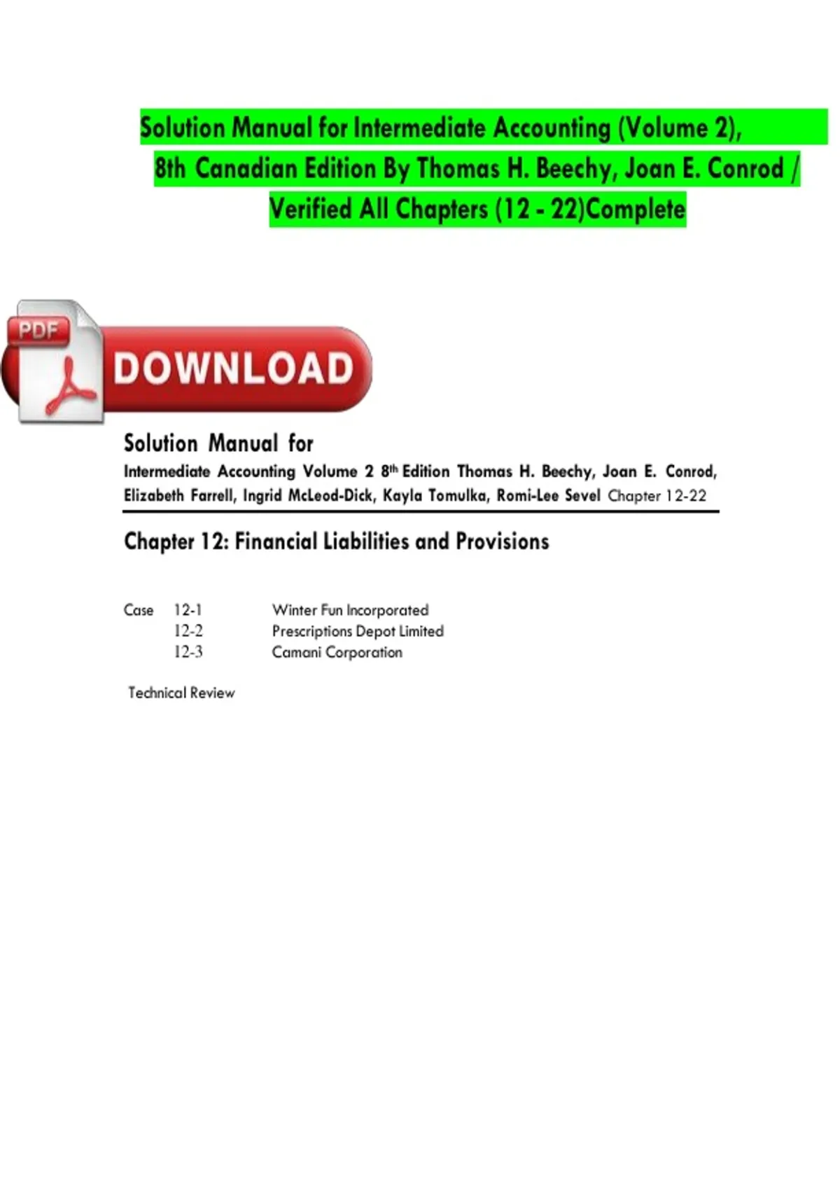 Solution Manual for Intermediate Accounting (Volume 2), 8th Canadian Edition by Thomas H. Beechy & Joan E. Conrod | Chapters 12–22 Complete | Latest Verified Answers
