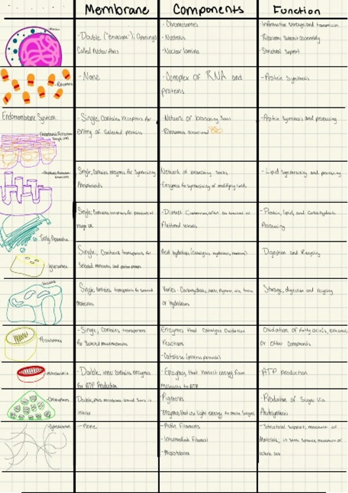 Clear organization of cells and their structures with functions for a biology class