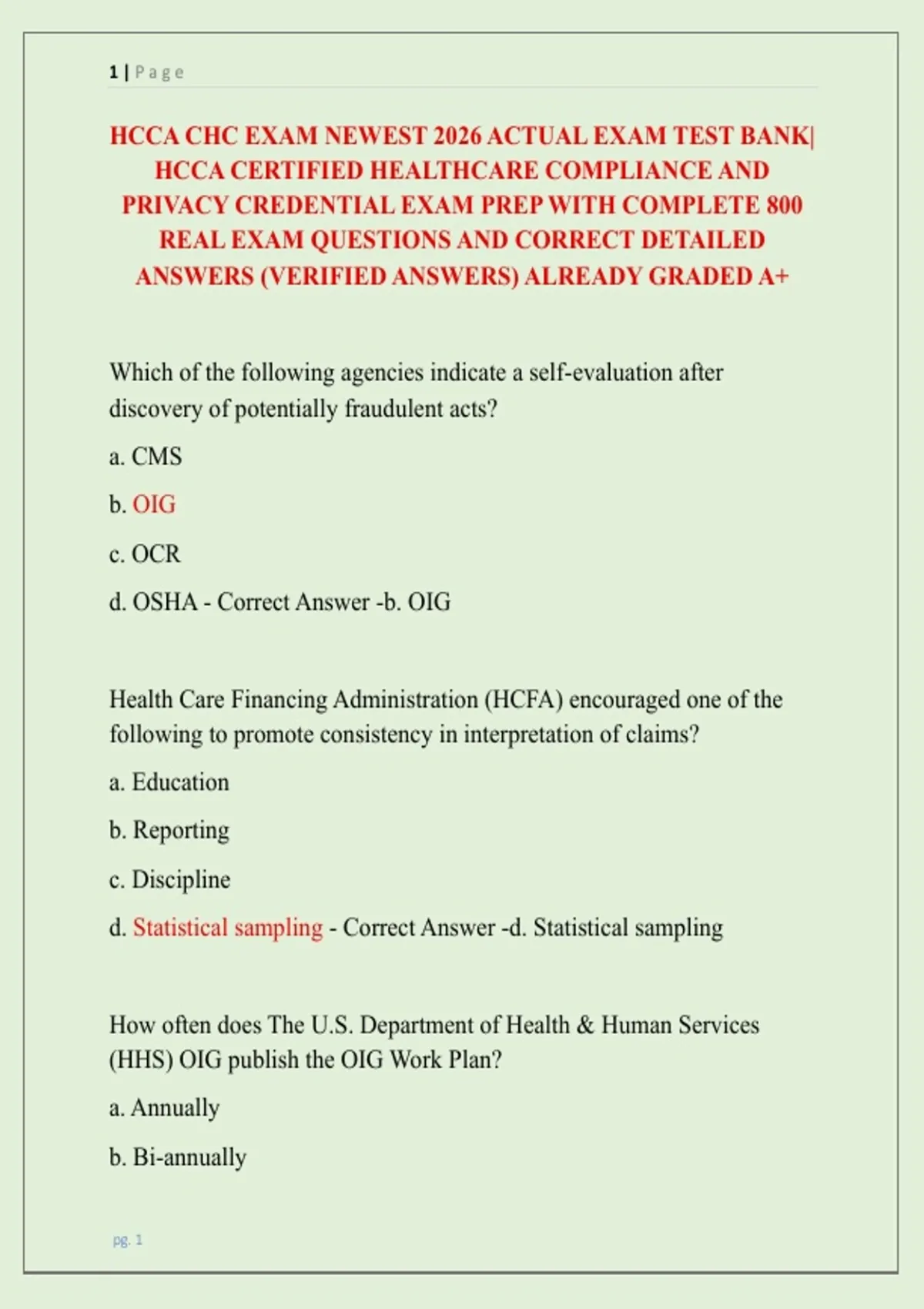 HCCA CHC EXAM NEWEST 2026 ACTUAL EXAM TEST BANK|