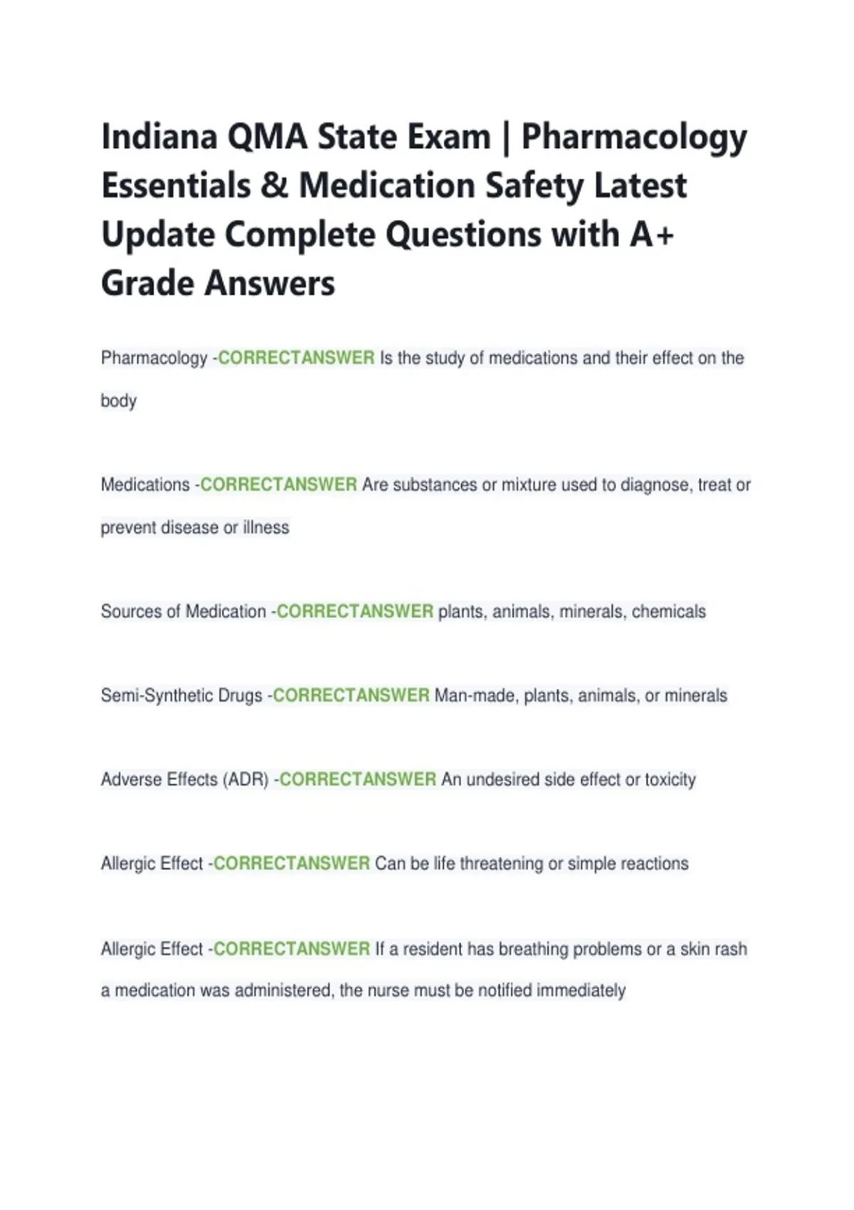 Indiana QMA State Exam | Pharmacology